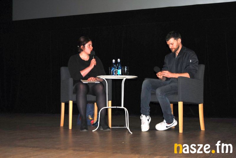 Mateusz Kościukiewicz opowiedział też o wielogodzinne, codziennej charakteryzacji podczas pracy przy tym filmie, o swojej żonie Małgorzacie Szumowskiej. Odpowiadał też na pytania publiczności, która licznie przybyła do kina na projekcję filmu i spotkanie z aktorem.