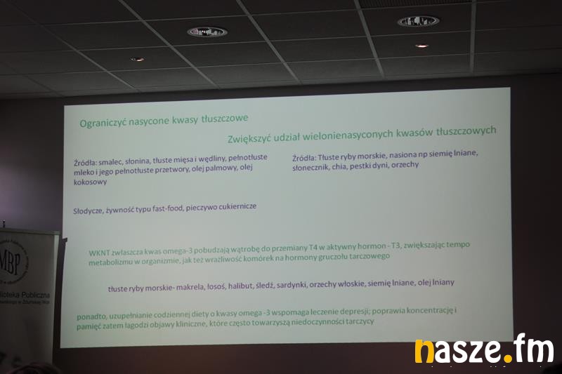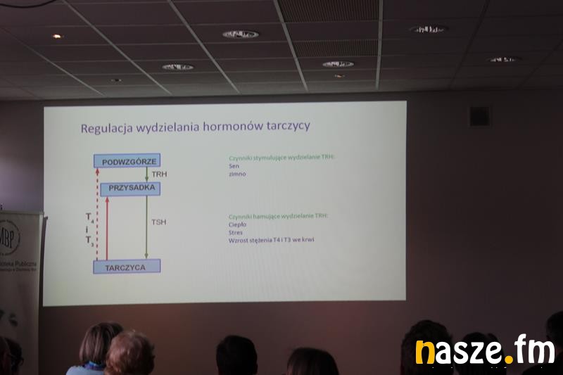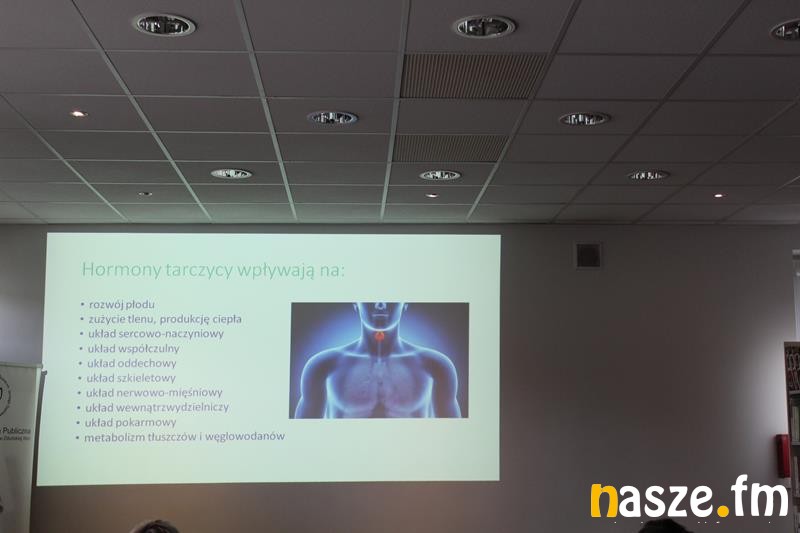 Po obejrzeniu i wysłuchaniu prezentacji multimedialnej, dietetyk opowiedziała na czym polega praca tarczycy, jak samodzielnie rozpoznać symptomy zaburzeń jej funkcjonowania oraz jakie badania diagnostyczne wykonać. Wspomniała, iż badania oraz leczenie powinno się odbywać pod kontrolą lekarza specjalisty. Omówiła również diety przywracające sprawność układowi immunologicznemu eliminujące objawy, a jednocześnie chroniące organizm przed kolejnymi zaburzeniami i problemami zdrowotnymi.