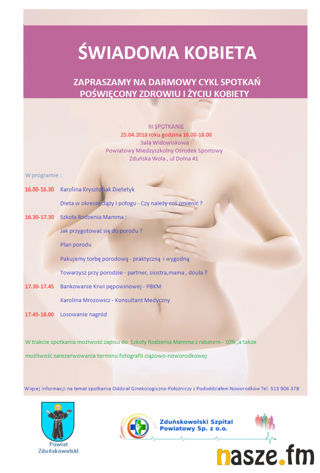Zduńskowolski Szpital Powiatowy oraz starostwo powiatową organizują kolejne spotkanie dotyczące zdrowia kobiet. Będzie okazja porozmawiać ze specjalistami i posłuchać ciekawych prelekcji.