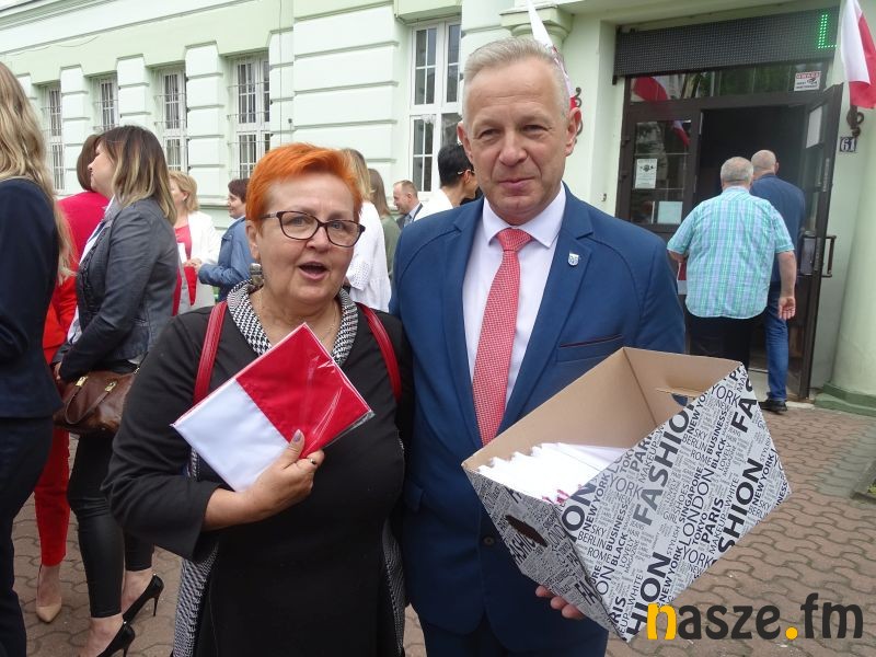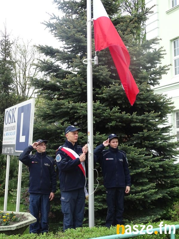 W Zduńskiej Woli zaakcentowano dziś (02.05) Dzień Flagi Rzeczpospolitej Polskiej. Obchody odbyły się przez Zespołem Szkół Elektronicznych.