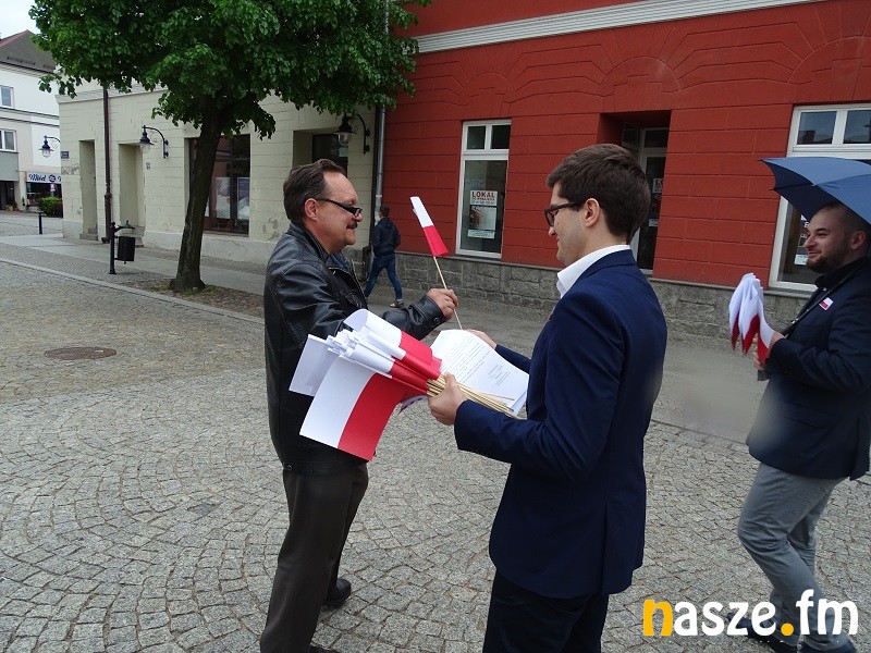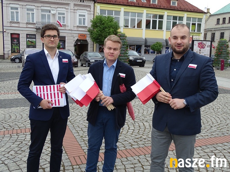 Przykładem Sieradz, gdzie od rana biało-czerwone chorągiewki rozdawali przechodniom Młodzi Demokraci.