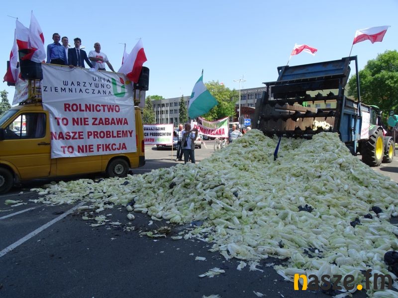 W środę na drogi powiatu sieradzkiego w związku z protestem rolników z Unii Warzywno Ziemniaczanej wyjechało ponad 200 traktorów. Rolnicy przekazali staroście sieradzkiemu petycję do Premiera RP i w geście protestu na placu Wojewódzkim wysypali kapustę pekińską, której nie mogli sprzedać.