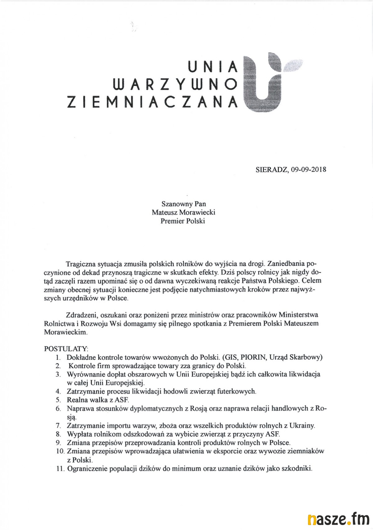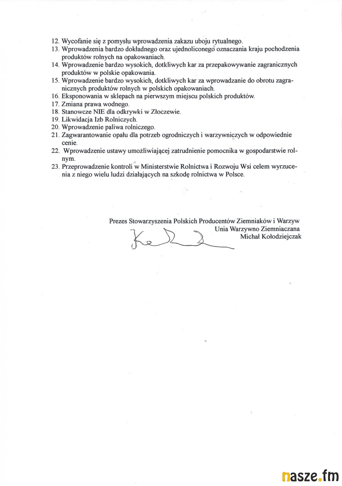 Poniżej treść petycji, którą rolnicy złożyli dziś na ręce starosty Mariusza Bądziora: