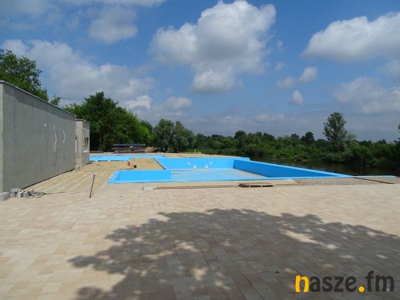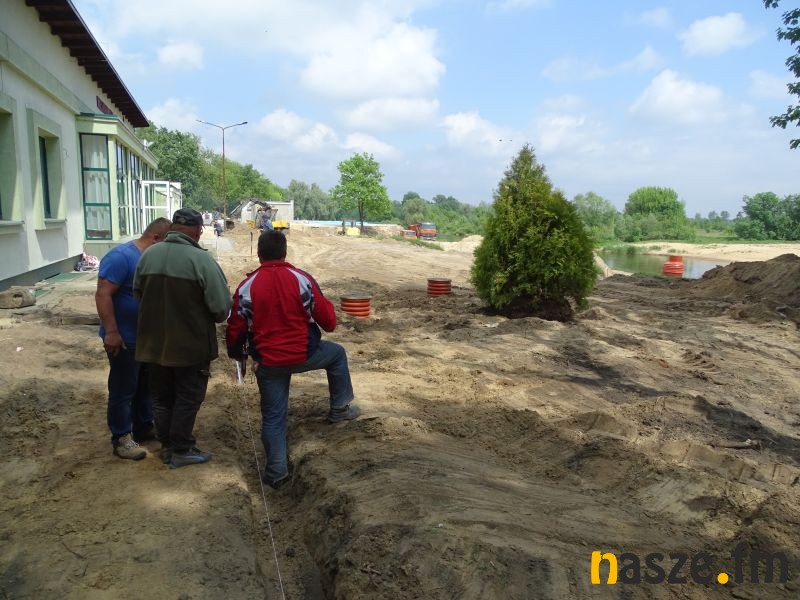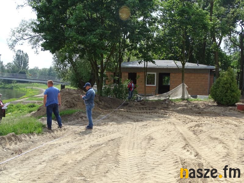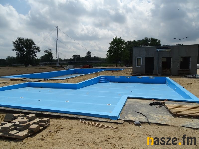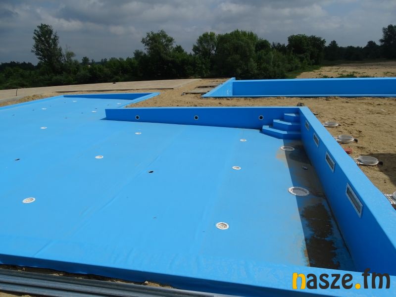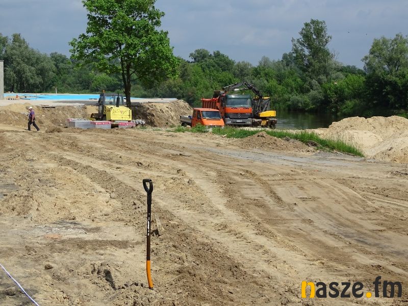 Nad sieradzką rzeką Wartą trwają prace przy ukształtowaniu terenu i instalacyjne w trzech budynkach - niecki basenowe są już prawie gotowe.