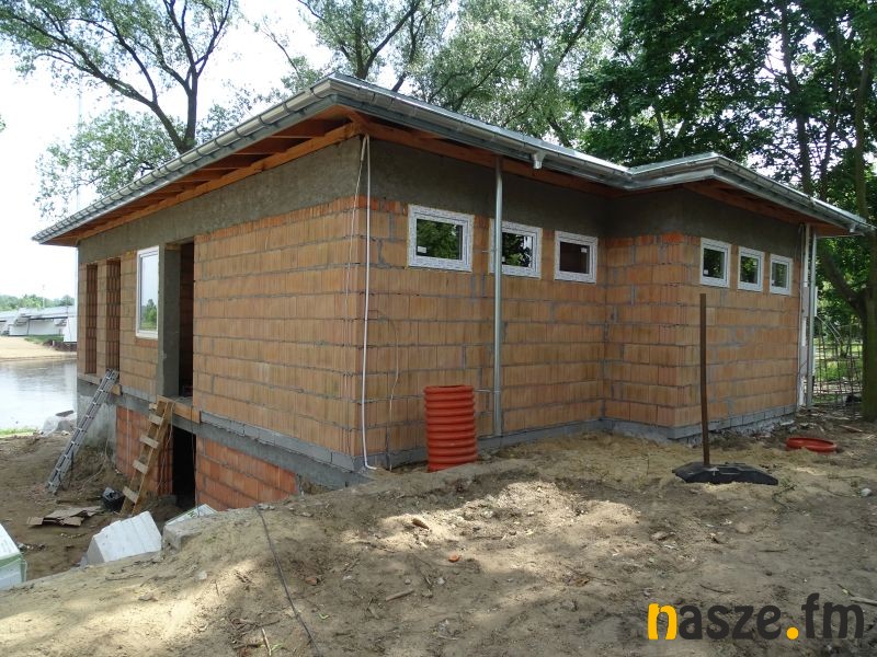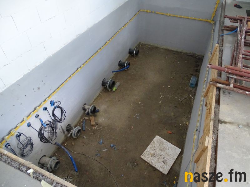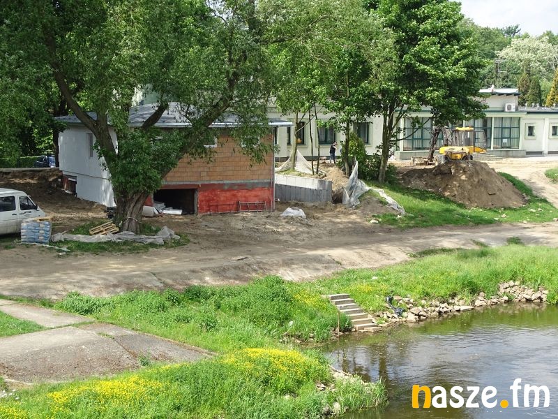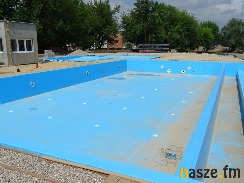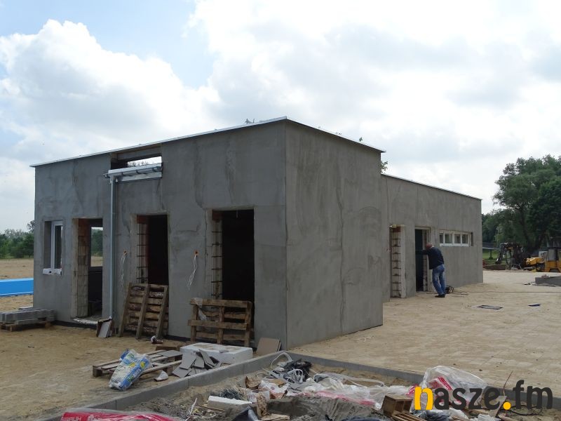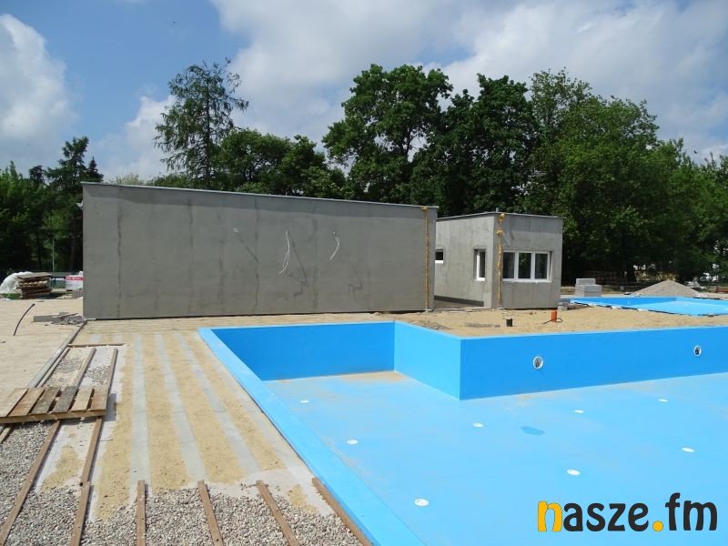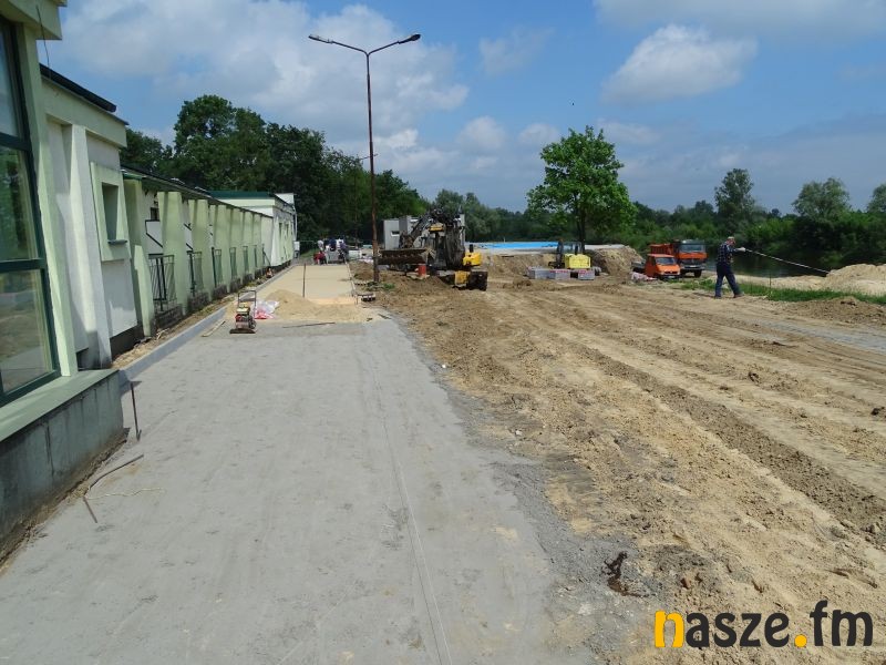 Nad sieradzką rzeką Wartą trwają prace przy ukształtowaniu terenu i instalacyjne w trzech budynkach - niecki basenowe są już prawie gotowe.