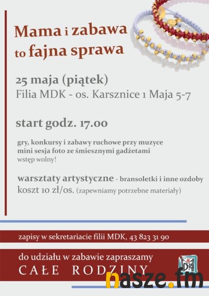 Mama i zabawa to fajna sprawa - na wydarzenie pod takim hasłem zaprasza filia Miejskiego Domu Kultury w Karsznicach. To już w najbliższy piątek.