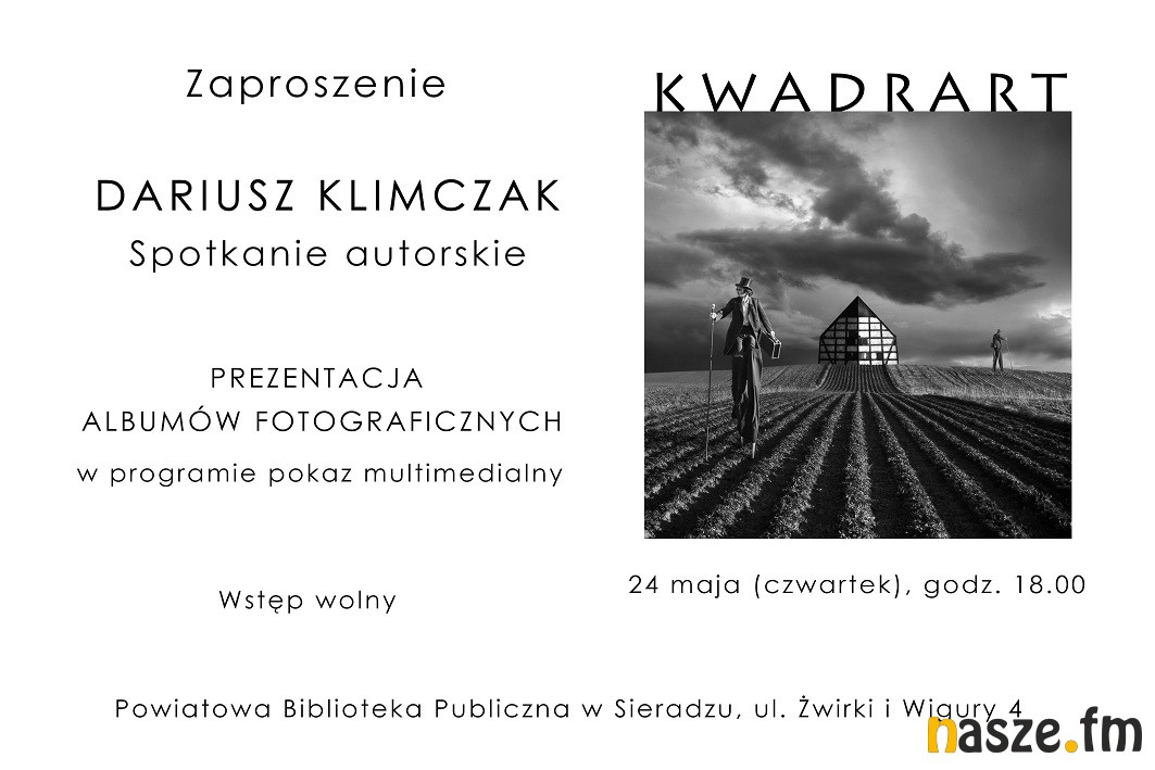 Z kolei na czwartek zaplanowano spotkanie z Dariuszem Klimczakiem. Będzie poświęcone albumom fotograficznym artysty i połączone z prezentacją multimedialną. Początek o godz. 18:00.