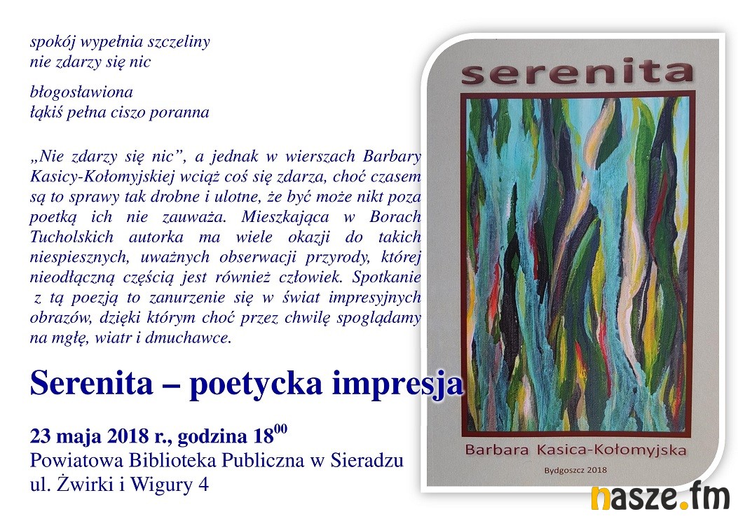 Powiatowa Biblioteka Publiczna w Sieradzu zaprasza w tym tygodniu na kilka interesujących spotkań. Gościem książnicy będzie jutro (środa 23 maja) Barbara Kasica-Kołomyjska. Z kolei dzieci będą mogły obejrzeć bajkę wystawioną przez Teatr Edukacji i Profilaktyki Maska z Krakowa. Na czwartek (24 maja ) zaplanowano spotkanie z Dariuszem Klimczakiem poświęcone jego albumom fotograficznym.