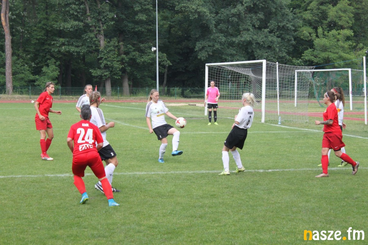 - W 6 minucie po akcji lewą stroną boiska Marta Grzelak dośrodkowała piłkę w pole karne gości, ale nadbiegająca Patrycja Okoń będąc sześć metrów przed bramką nie trafiła czysto w piłkę. Trzy minuty później po zamieszaniu w polu karnym Pogoni sytuację wyjaśniła w ostatniej chwili Julita Augustyniak. Przez cały mecz aktywne były dwie nasze skrzydłowe, zarówno Marta Grzelak i Julita Augustyniak dogrywały piłki z bocznych sektorów boiska. W 13 minucie na strzał z przed pola karnego gości zdecydowała się Justyna Kubik, ale piłka minęła prawy słupek bramki Piastovii. Przed końcem pierwszej połowy meczu dwie groźne sytuacje stworzyły sobie zawodniczki gości. Najpierw piłka odbiła się od słupka i wyszła w pole bramkowe, a w ostatniej minucie lepsza w sytuacji sam na sam z przeciwniczką okazała się Beata Rogowska.
