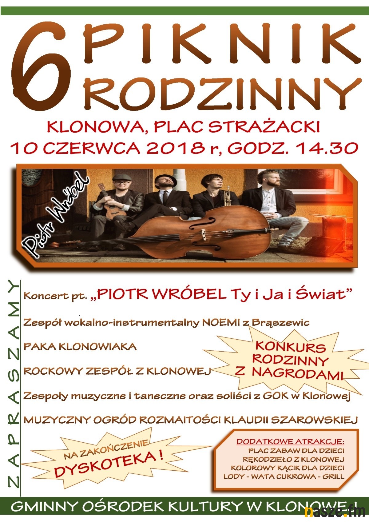 Konkurs rodzinny będzie się odbywał pomiędzy występami na scenie. Jakie atrakcje muzyczne czekają na odwiedzających Klonową? :
