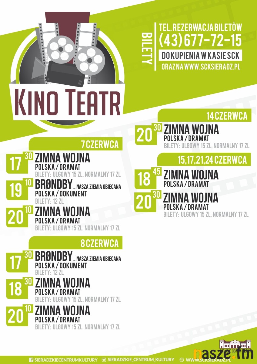 W czerwcu w Kinie Teatr w Sieradzu będziecie mogli obejrzeć dwie produkcje filmowe. Coś dla siebie znajdą fani piłki nożnej, to za sprawą filmu "Brøndby... nasza ziemia obiecana". Kolejną propozycja jest film,o którym było głośno w samym Cannes, mowa o "Zimnej wojnie" Pawła Pawlikowskiego.