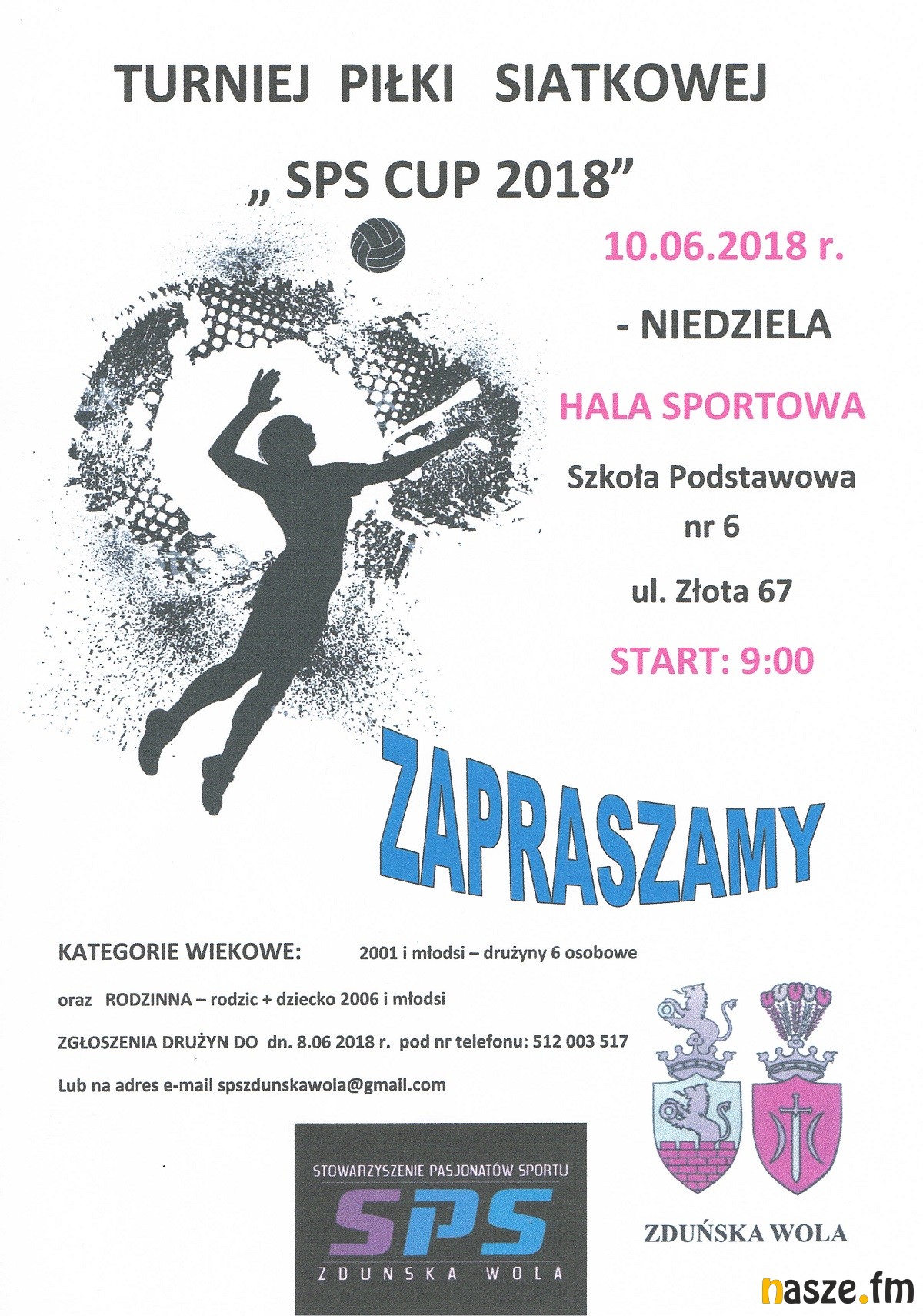 Stowarzyszenie Pasjonatów Sportu ze Zduńskiej Woli organizuje otwarty turniej siatkówki SPS CUP 2018, który odbędzie się w najbliższą niedzielę (10 czerwca).