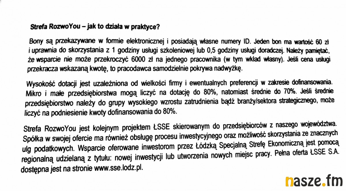 - Informujemy przedsiębiorców o tym, że warto do nas przyjść i skorzystać z dofinansowania do szkoleń. Każda firma może otrzymać do 80 proc. dotacji na szkolenia, mowa o kursach, usługach doradczych czy coachingowych. To wszystko po to, żeby rozwijać swoją firmę. Zdecydowaliśmy się wyruszyć w region, żeby przedstawić przedsiębiorcom ofertę, której zasady są bardzo proste. Jesteśmy tutaj po to,żeby informować i przy okazji wypełnić z osobami, które się tutaj pojawią, specjalną aplikację pozwalającą skorzystać z dostępnych środków jak najszybciej - mówi Natalia Popłonikowska, specjalista ds. promocji i obsługi przedsiębiorstw.