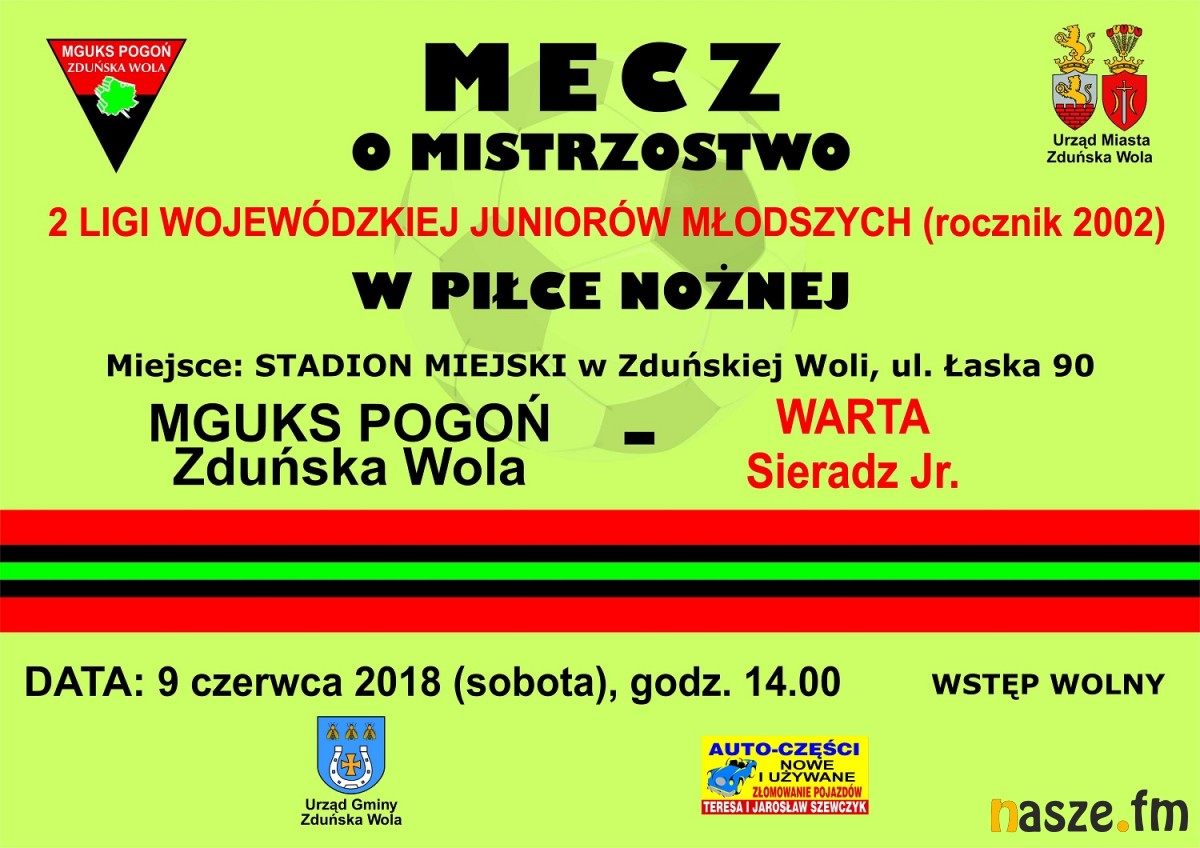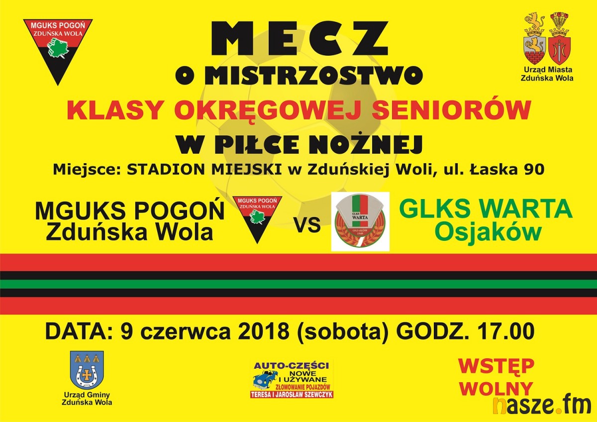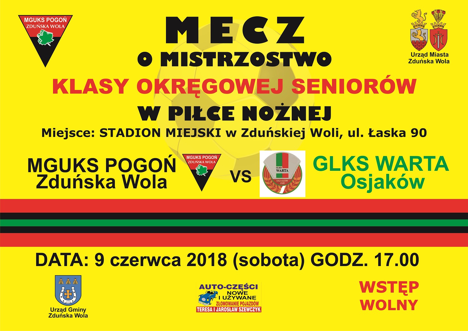 Ostatni w tym sezonie ligowy mecz przed własną publicznością rozegrają piłkarze Warty. W Zduńskiej Woli wygrana miejscowej Pogoni zapewni jej awans do IV ligi.