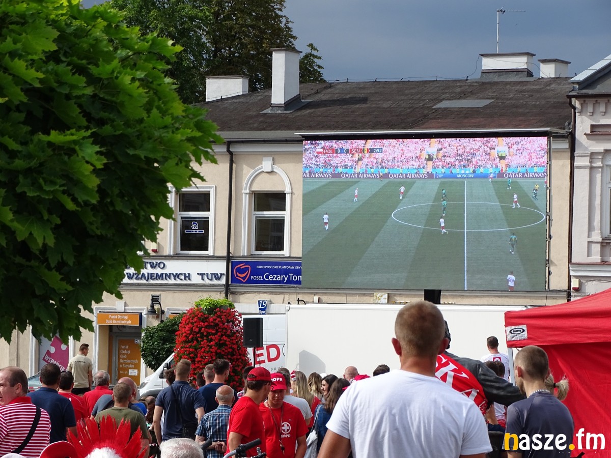 Strefa kibica na sieradzkim rynku była wypełniona po brzegi. Nie zabrakło emocjonujących okrzyków i ogromnej radości, zwłaszcza podczas pierwszej i jedynej bramki Krychowiaka.