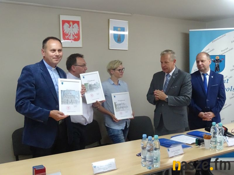 Wczoraj (20.06) Powiat Zduńskowolski podpisał 3 umowy na prace konserwatorskie, restauratorskie lub roboty budowlane przy zabytkach. Pieniądze trafią do kościołów w Korczewie i Szadku oraz pałacu w Pstrokoniach.