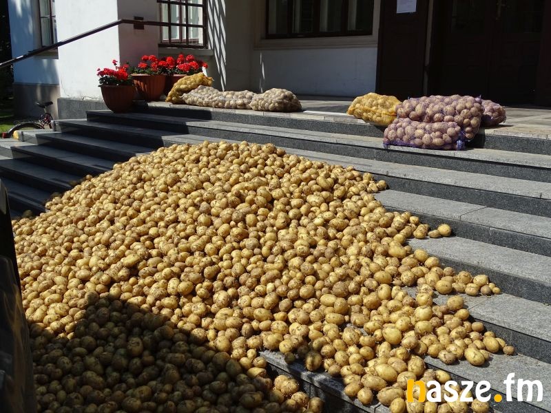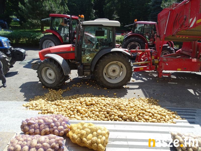 Na schody kościerzyńskiego oddziału ŁODR w Bratoszewicach rolnicy wysypali dziś ziemniaki. - Chcemy pokazać jak wygląda nasz, polski ziemniak, którego nikt nie chce jeść ani kupować! A jak już, to rolnik za worek 15 kg dostaje 4 złote, a wyprodukowanie kosztuje minimum 8 - mówią rolnicy.