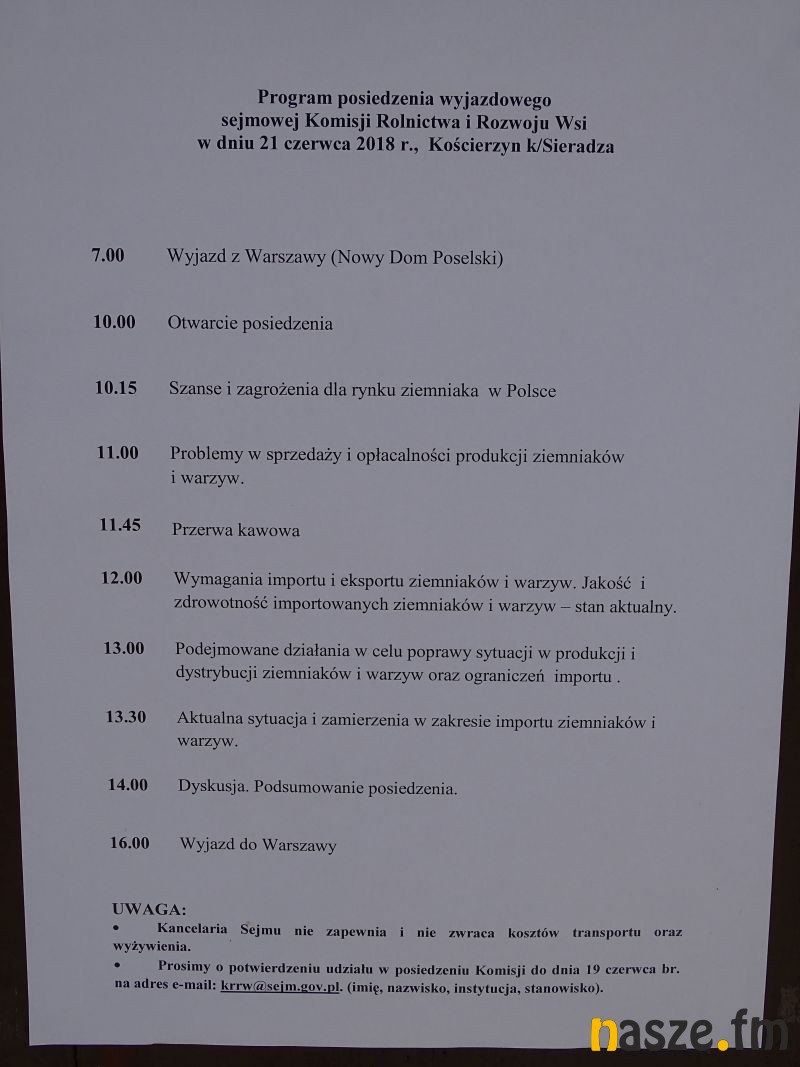 Ponad stu producentów m.in. z Unii Warzywno - Ziemniaczanej przybyło dziś do podsieradzkiego Kościerzyna, by protestować przeciw trudnej sytuacji na polskiej wsi. W Ośrodku Doradztwa Rolniczego odbywa się dziś wyjazdowe posiedzenie sejmowej Komisji Rolnictwa i Rozwoju Wsi.