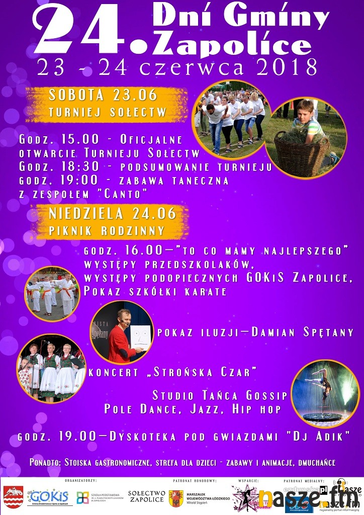 W najbliższy weekend świętować będą mieszkańcy Gminy Zapolice. W sobotę i niedzielę na terenie Gminnego Ośrodka Kultury i Sportu odbywać się będą Dni Gminy Zapolice. Pierwszego dnia rozegrany zostanie Turniej Sołectw, natomiast w niedzielne popołudnie upłynie pod znakiem Pikniku Rodzinnego.