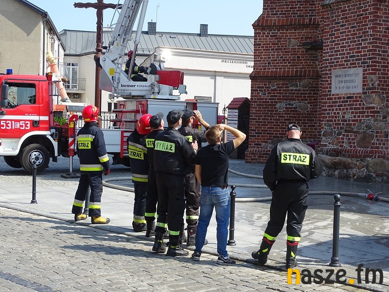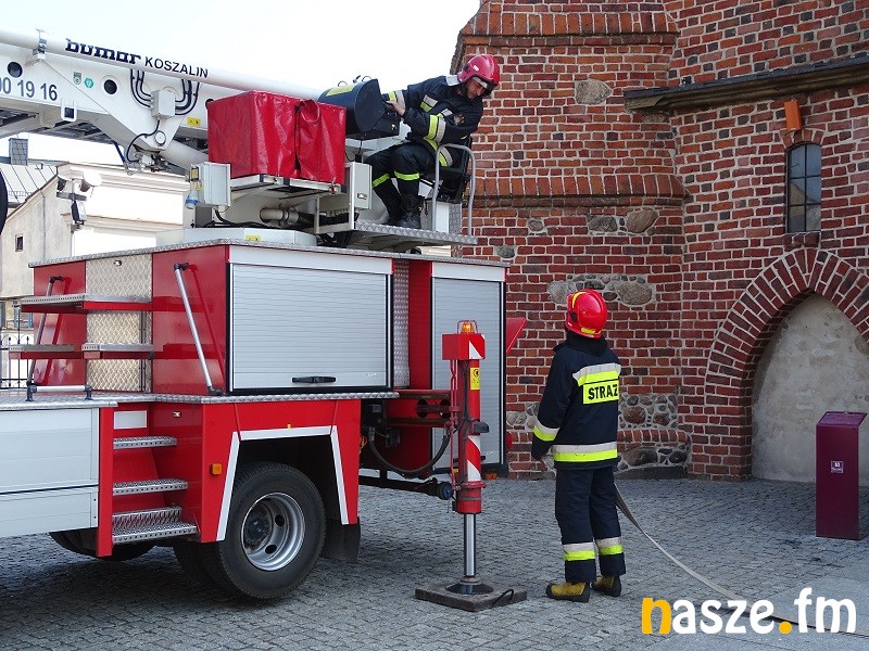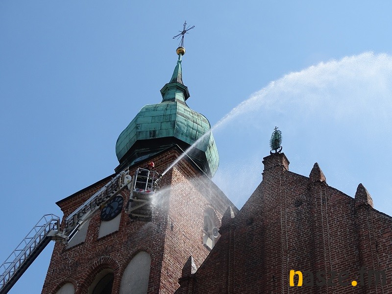 W ramach dzisiejszych działań strażacy najpierw obejrzeli świątynię od środka, a potem przystąpili do symulowanej akcji gaśniczej podając wodę z podnośnika na dach bazyliki. Kolejne takie działania już w najbliższych dniach.