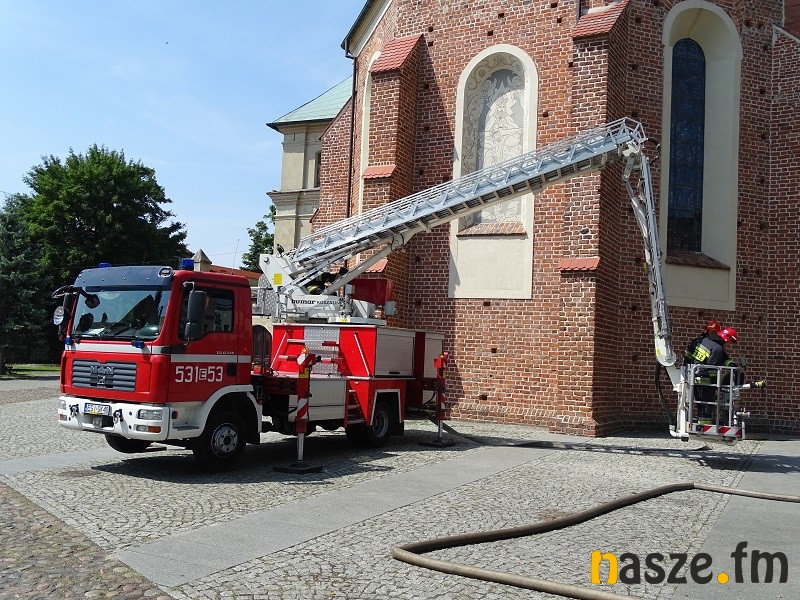 Ratownicy z Państwowej Straży Pożarnej w Sieradzu rozpoczęli dziś cykl ćwiczeń przeciwpożarowych w obrębie Bazyliki Mniejszej w Sieradzu. Gasili tam symulowany pożar świątyni.