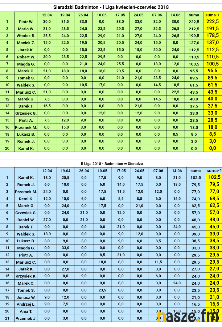 Miłośnicy badmintona zrzeszeni w sieradzkiej sekcji zakończyli sezon 2017/2018. W rozgrywkach Sieradzkiej Ligi Badmintona wzięło udział ponad 30 amatorów tego sportu. Do tego doszły występy w turniejach, zarówno wyjazdowych, jak i tych organizowanych w Sieradzu.