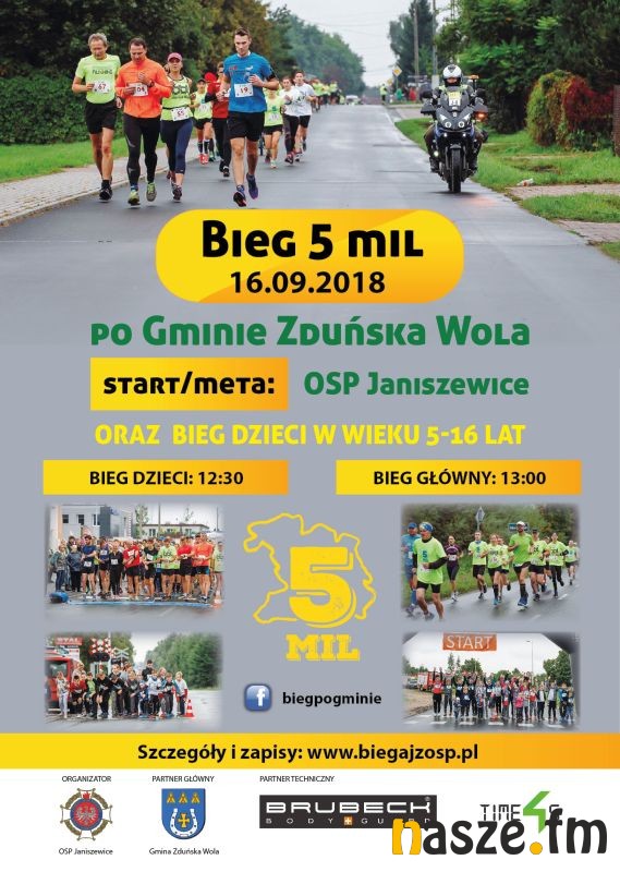 Druhowie z OSP Janiszewice zapraszają na trzecią edycję biegu "5 mil po Gminie Zduńska Wola". Impreza jutro odbędzie się przy siedzibie strażackiej jednostki. Kierowcy muszą liczyć się z czasowymi zmianami w organizacji ruchu.