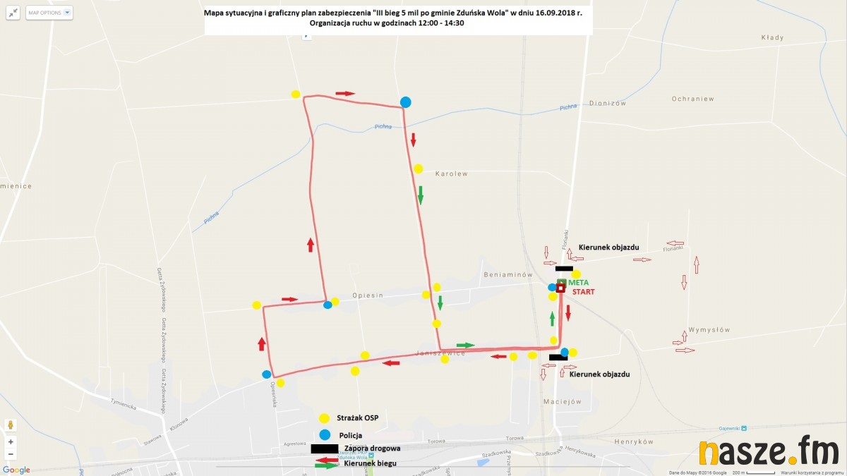 W związku z organizacją biegu w godz. 12:00 - 14:50 wystąpią czasowe utrudnienia i ograniczenia w ruchu (Patrz mapkę poniżej).