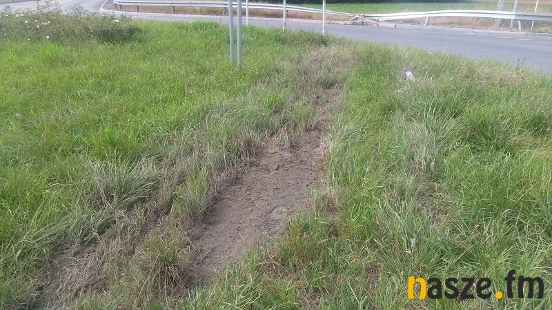 Inne ślady mogą też świadczyć o tym, że jadący za nim pojazd, aby uniknąć uderzenia w tył pierwszego hamującego nagle auta, odbił w prawo, a potem również przejechał przez trawiastą wysepkę i uderzył w zewnętrzną metalową barierę, która uległa uszkodzeniu.