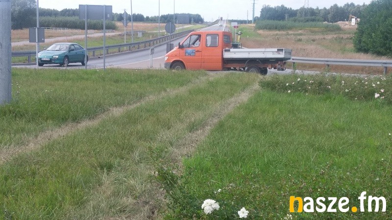 Ślady "ciekawego" sposobu jazdy widać na rondzie im. Solidarności Rolników Indywidualnych tuż przy łączniku prowadzącym do drogi ekspresowej S-8 Sieradz Południe. Wyraźnie widać, że ktoś pomimo obowiązującego tam ruchu okrężnego pojechał... na wprost.