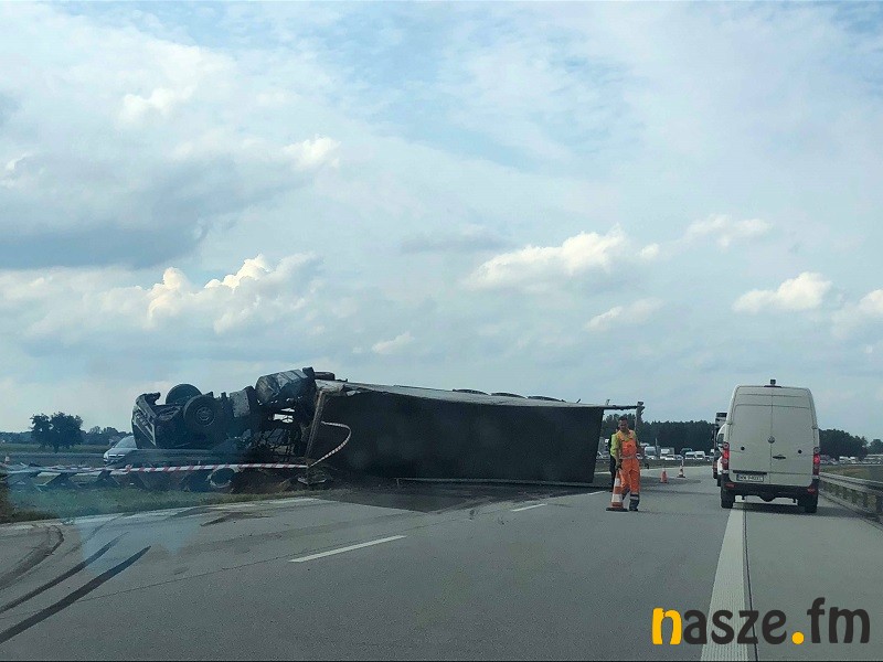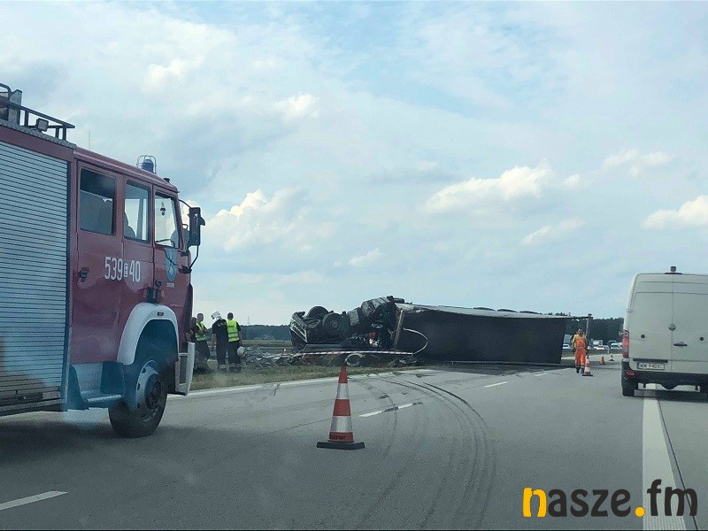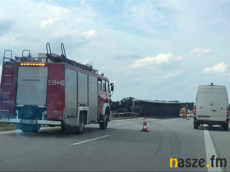 Jak informuje rzecznik sieradzkiej policji - ciągnik siodłowy wywrócił się blokując dwa wewnętrzne pasy ruchu w obu kierunkach, na wysokości miejscowości Potok.
