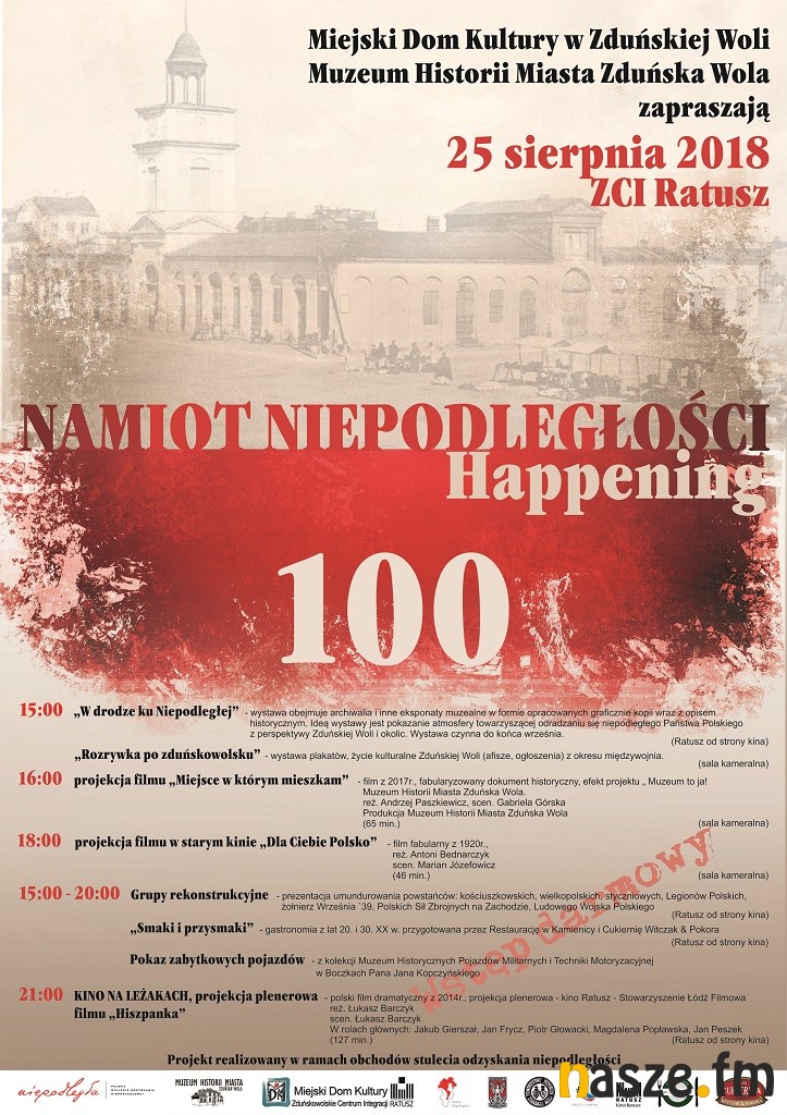 Miejski Dom Kultury oraz Muzeum Historii Miasta zapraszają na happening "Namiot Niepodległości", który dziś (25.08) stanął przy zduńskowolskim Ratuszu. Impreza jest organizowana w ramach obchodów stulecia odzyskania przez Polskę niepodległości.