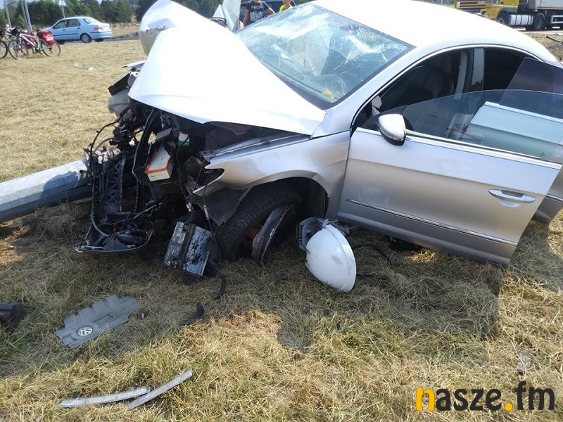 Z nieznanych jeszcze przyczyn 34-letni Ukrainiec, kierowca osobowego vw passata jadąc od strony Złoczewa, wjechał na wysepkę i ściął stojącą tam latarnię. W wyniku zderzenia do sieradzkiego szpitala na badania przewieziono jego 25-letniego pasażera. Dokładne okoliczności zdarzenia wyjaśnia teraz policja. Wiadomo, że kierowca passata był trzeźwy.