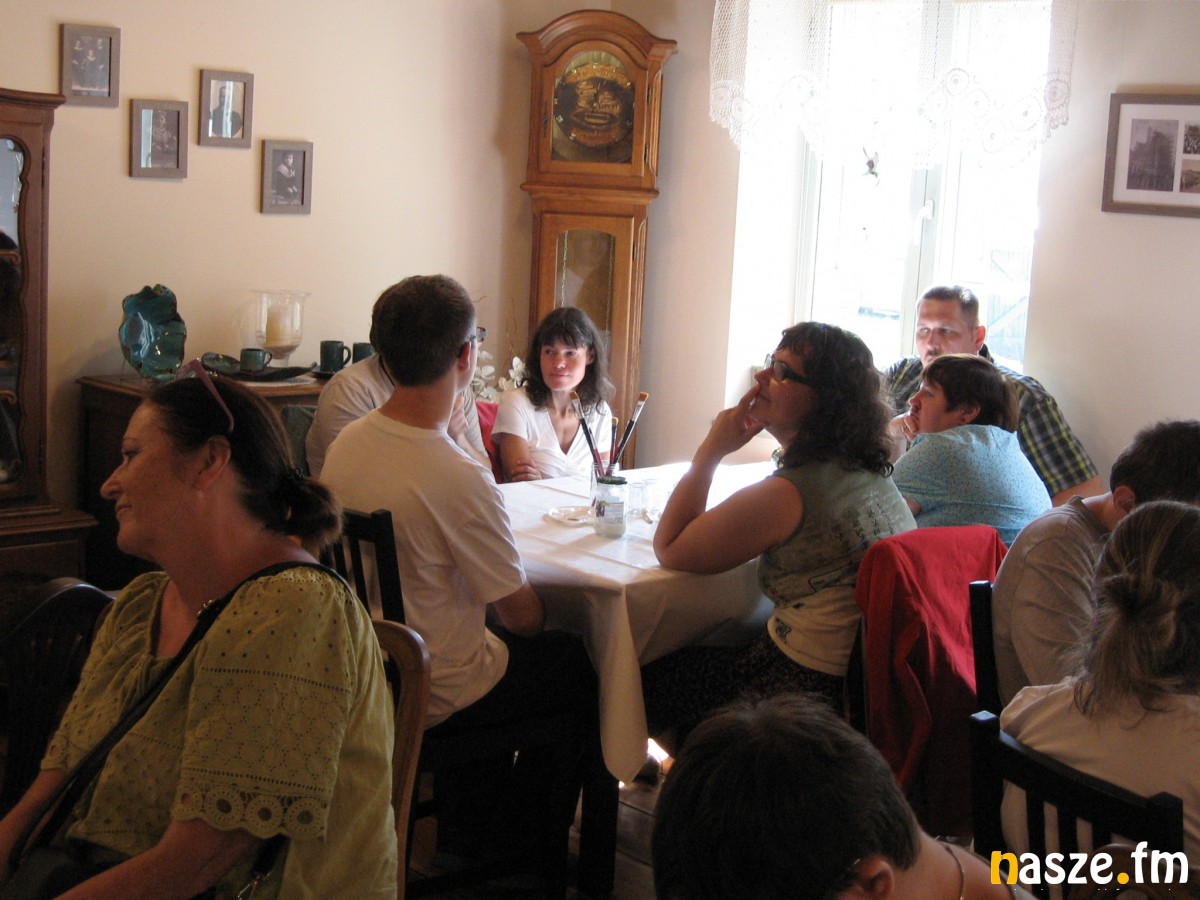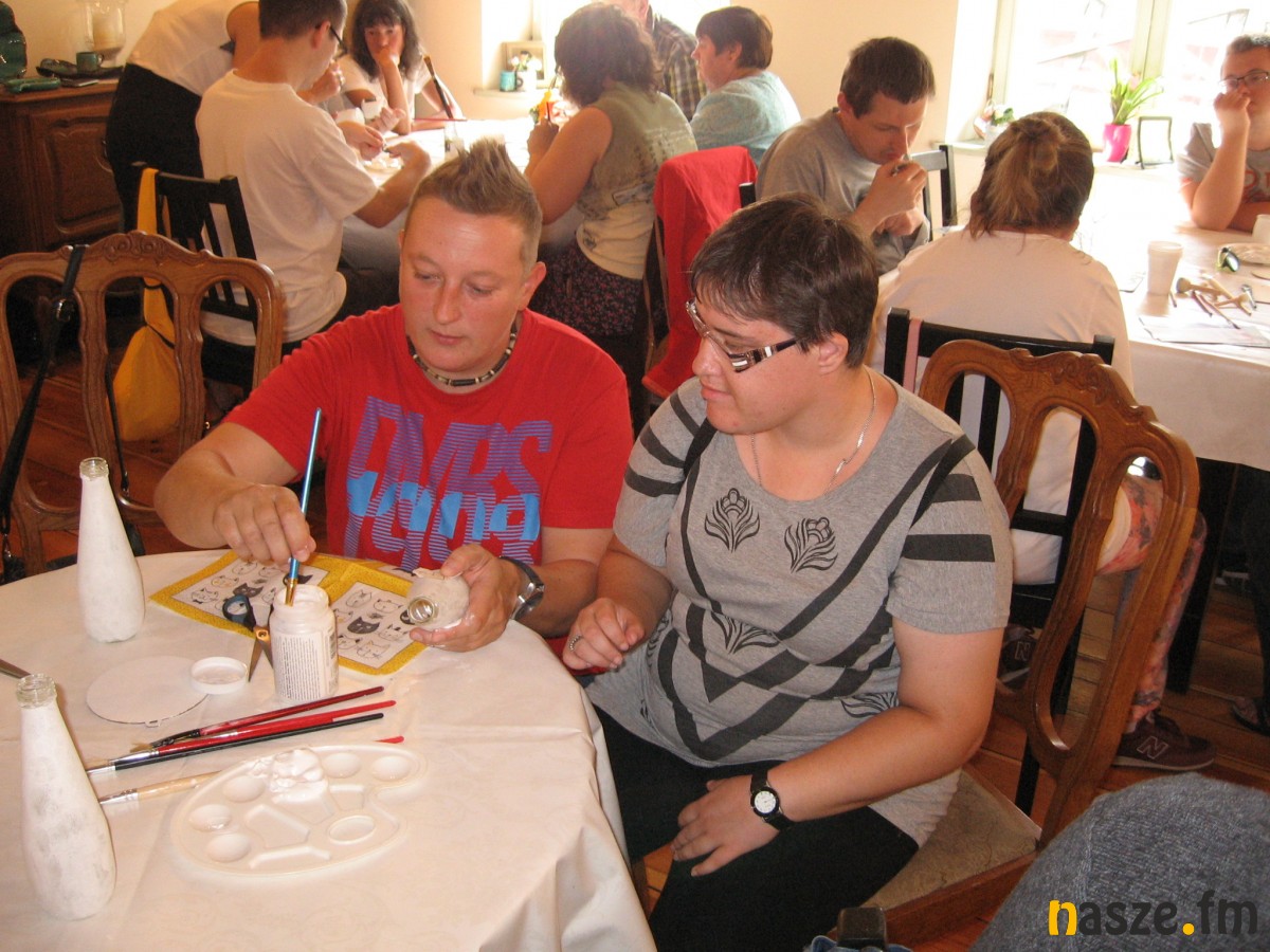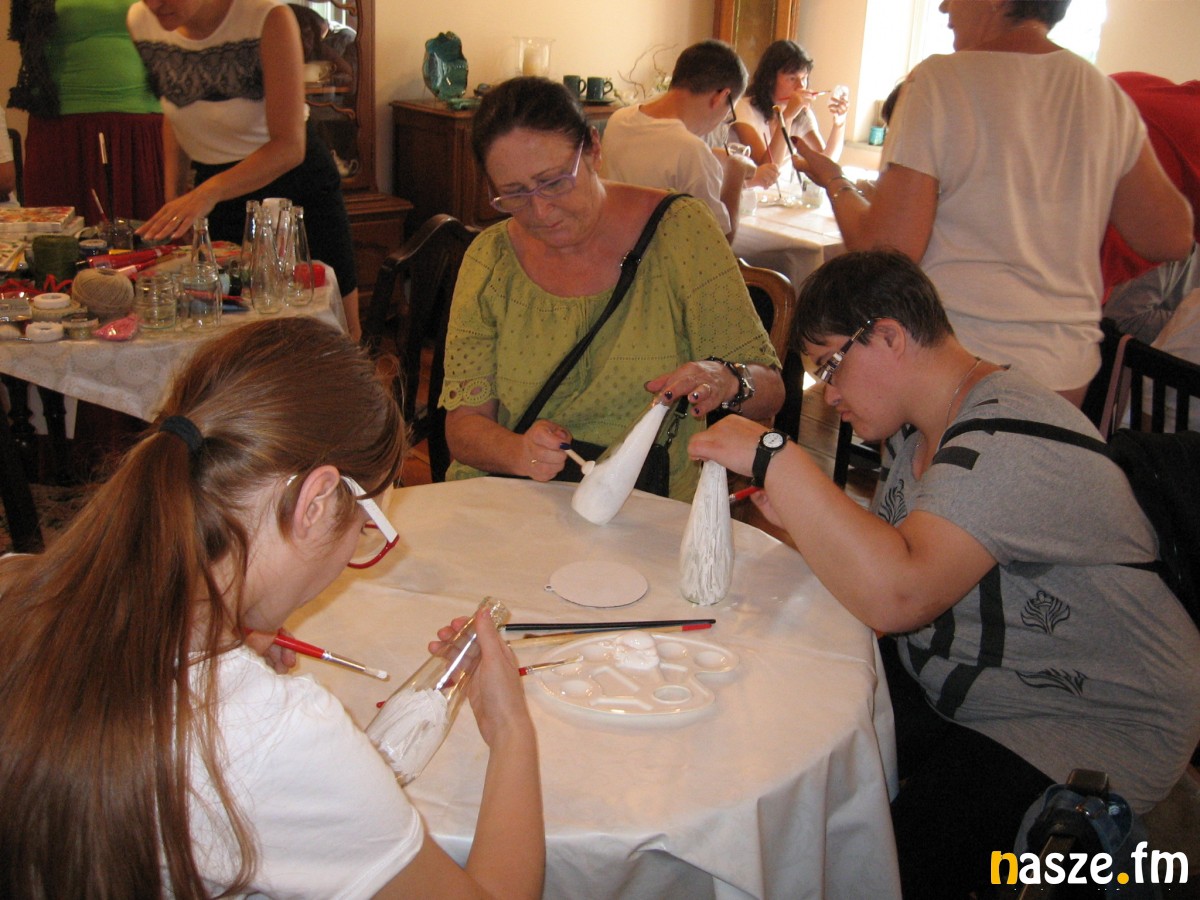 Uzupełnieniem zwiedzania były warsztaty decoupage, przeprowadzone w kawiarni "U Tkaczy". Specjalnie z okazji przyjazdu wycieczki z Sieradza, przeprowadziły je przedstawicielki zgierskiego koła Polskiego Stowarzyszenia na rzecz Osób z Niepełnosprawnością Intelektualną. Efektem warsztatów są pamiątki z wyjazdu - udekorowane szklane naczynia.