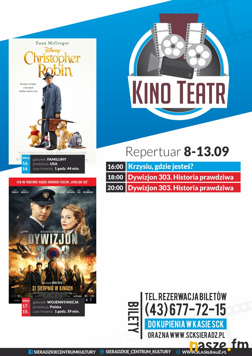 Od jutra w Kinie Teatr będziecie mogli ponownie obejrzeć film familijny " Krzysiu, gdzie jesteś? ", a także nową produkcję " Dywizjon 303. Historia prawdziwa". Szczegóły na plakacie.