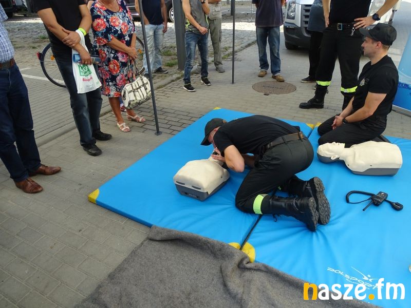 Dziś na Targowisku Miejskim w Zduńskiej Woli odbył się happening, podczas którego m.in. przeprowadzono kurs udzielania pierwszej pomocy. Udzielano też porad jak w bezpieczny sposób poruszać się rowerem.
