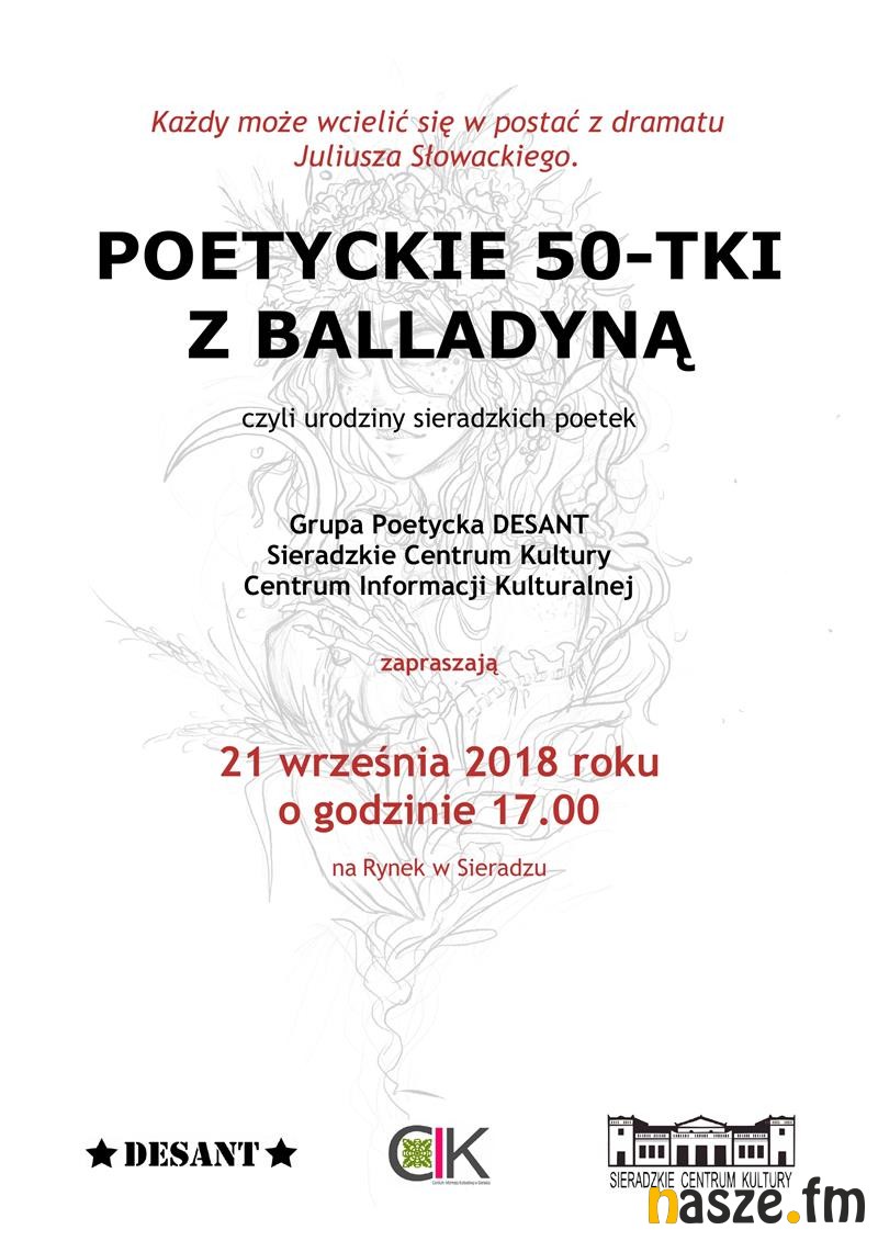 - Wspólnie z Centrum Informacji Kulturalnej i Sieradzkim Centrum Kultury zapraszamy na "Poetyckie 50-tki, czyli urodziny sieradzkich poetek". Dwie z nas, czyli ja i Anna Baśnik mamy w tym roku okrągłą rocznice urodzin, w zawiązku z tym chcemy świętować tam gdzie uważamy za stosowne, czyli na Rynku w Sieradzu. Zapraszamy do wspólnego czytania Balladyny. Większość z Państwa tego dramatu już ze szkoły nie pamięta, dlatego postanowiliśmy go odświeżyć. Każdy może się przyłączyć, każdy dostanie do ręki mikrofon i książkę, a poza tym poczęstujemy Państwa oczywiście czymś z malinami, ale co to będzie niech pozostanie tajemnicą - mówi Joanna Chachuła z Desantu.