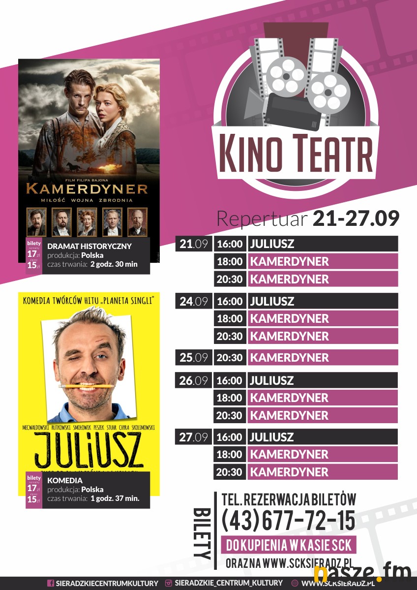 Do 27 września w Sieradzkim Centrum Kulturalnym możecie oglądać komedię "Juliusz" oraz dramat historyczny "Kamerdyner". Daty i godziny seansów znajdziecie na plakacie.