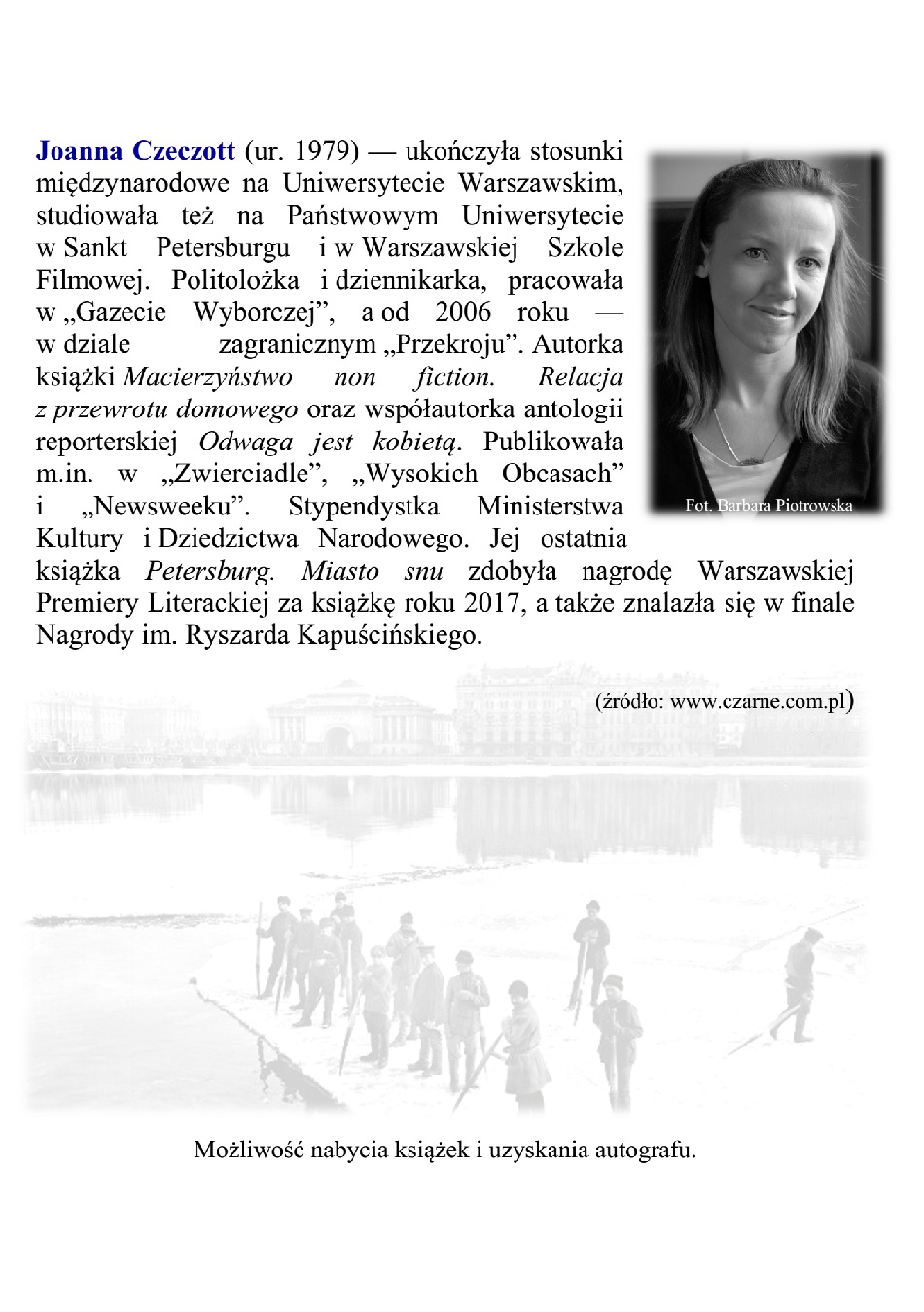 Dziennikarka i politolożka odwiedzi Sieradz. Na spotkanie podczas, którego opowie o Petersburgu, zaprasza Powiatowa Biblioteka Publiczna w Sieradzu. Wieczór autorski Joanny Czeczott zaplanowano na dzisiaj. Początek o godz. 18:00.