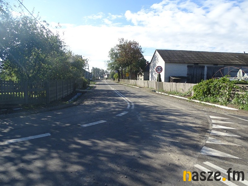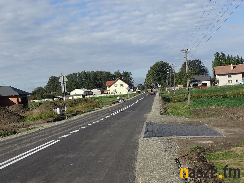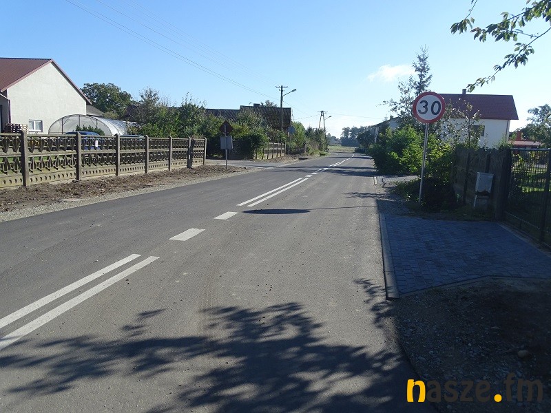 Ta droga zyskała nową podbudowę i asfaltową jezdnię, do tego odwodnienie, chodniki, tzw. przejścia platformowe, miejsce do parkowania autobusu przy szkole i wreszcie nowe oznakowanie poziome.