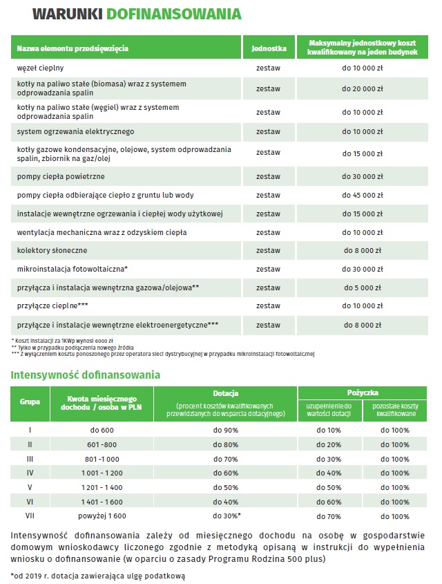 - Rozszerzono grupę beneficjentów o osoby fizyczne, posiadające prawo własności lub będące współwłaścicielami wydzielonego w budynku jednorodzinnym lokalu z wyodrębnioną księgą wieczystą. Dla tych Beneficjentów maksymalna wartość kosztów kwalifikowanych, od których liczona jest wysokość dotacji, będzie wyznaczana w oparciu o wydzielony lokal mieszkalny.
