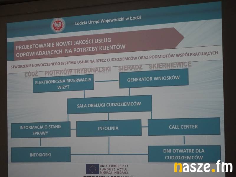 Celem projektu Łódzkie bliżej cudzoziemca jest upowszechnienie instrumentów legalizacji pobytu i pracy dla cudzoziemców z obszaru państw trzecich. Przewiduje utworzenie punktów legalizacji pobytu w trzech terenowych punktach paszportowych Urzędu Wojewódzkiego tj. w Piotrkowie Trybunalskim, w Skierniewicach i w Sieradzu (pomieszczenia w budynku Starostwa Powiatowego). Przeprowadzona zostanie modernizacja sieci logicznej i elektrycznej, zainstalowane łącza OST 112 oraz podłączenie programu Pobyt w trzech punktach Wydziału Spraw Obywatelskich i Cudzoziemców. Umożliwi to utworzenie dziewięciu stanowisk obsługi klienta cudzoziemca, które wyposażone zostaną w niezbędne meble i sprzęt informatyczny. Zapewnione będzie profesjonalne oznakowanie ścieżki obsługi klienta, ułatwiające cudzoziemcom załatwianie spraw.