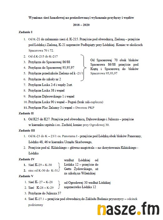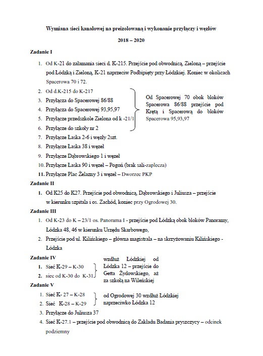 Zgodnie z warunkami konkursu realizacja projektu została rozpoczęta już przed podpisaniem umowy i wykonane zostały już przyłącza i węzły w kamienicach Łaska 2 i Łaska 6 oraz wymieniona została sieć na odcinku od przejścia pod ulicą Łódzką obok Zespołu Szkół im. Marii Grzegorzewskiej do przejścia pod ulicą Spacerową (około 250 metrów sieci).