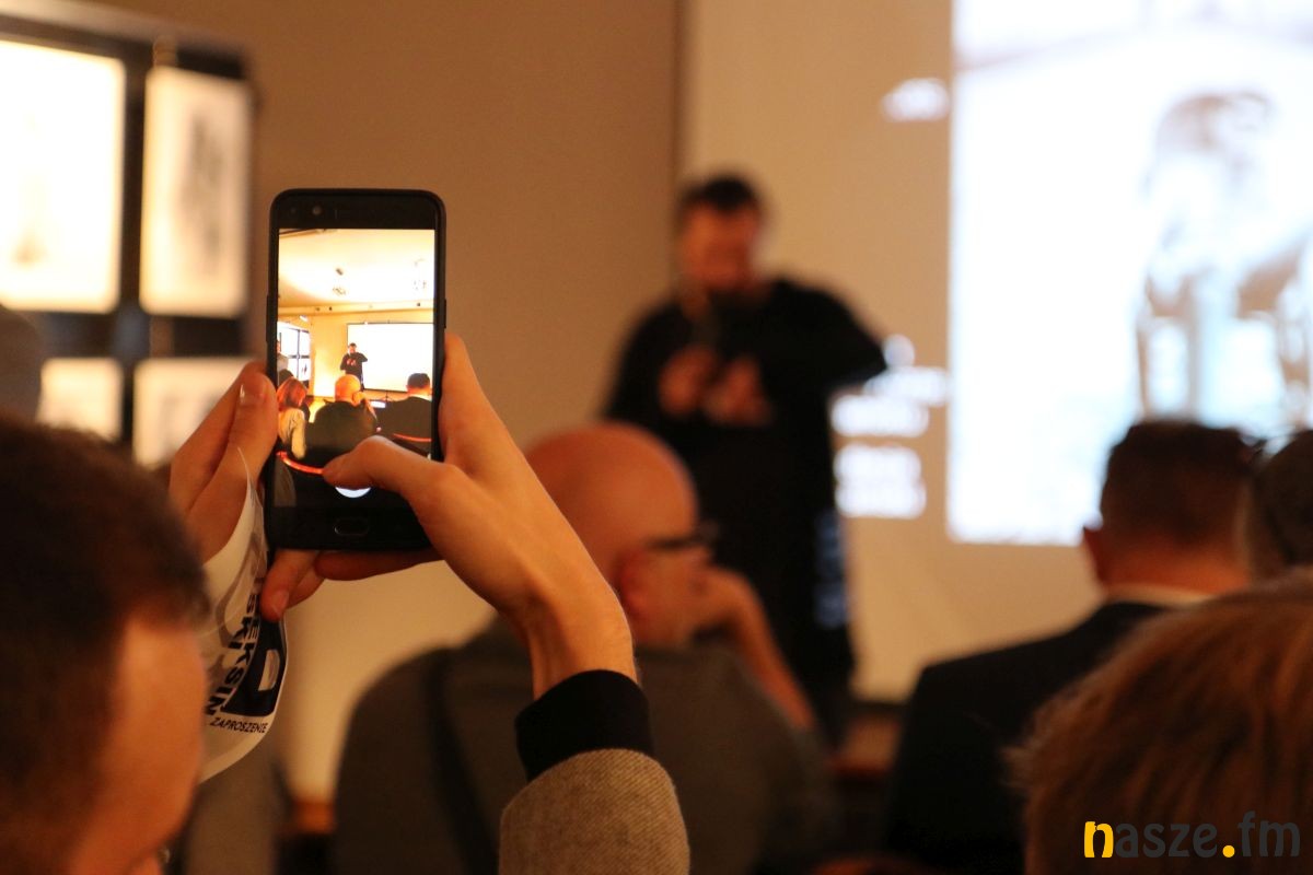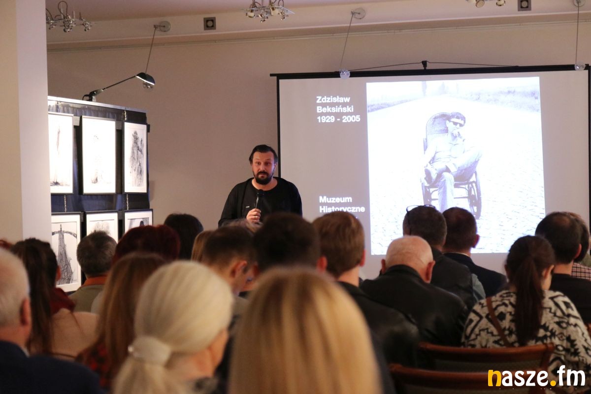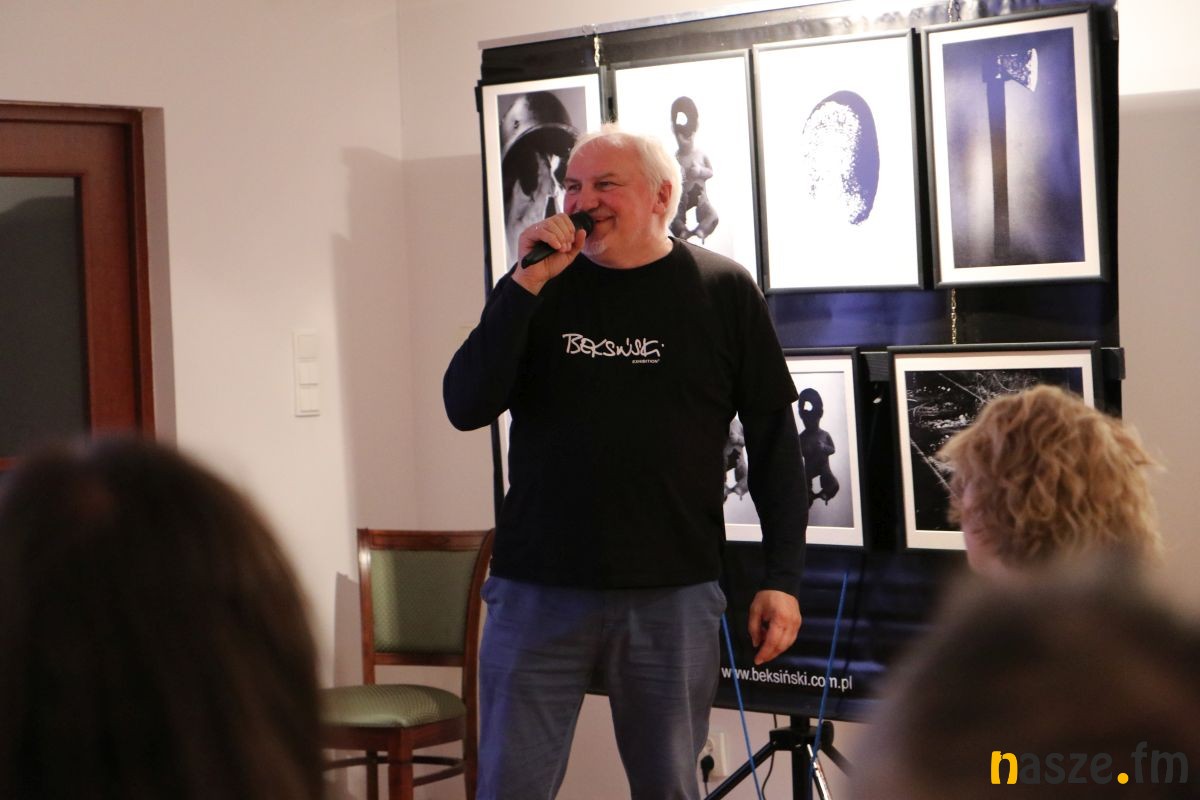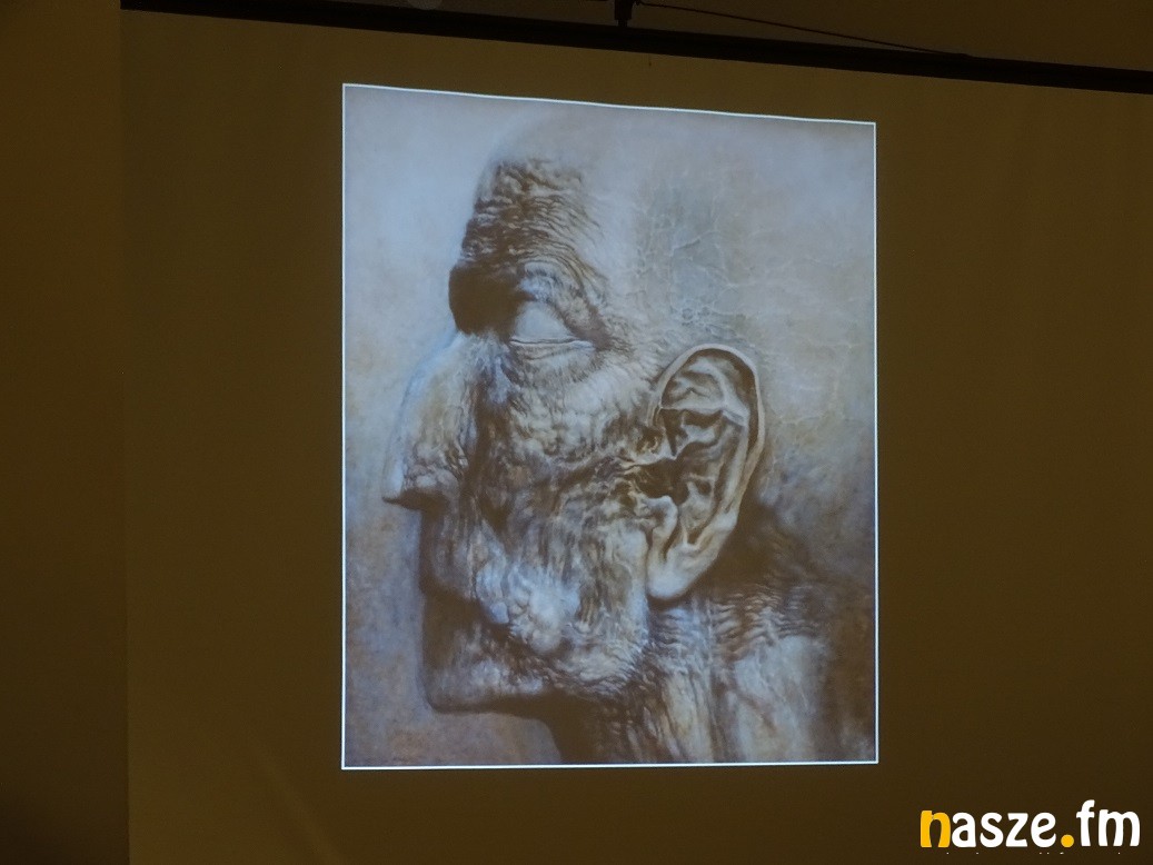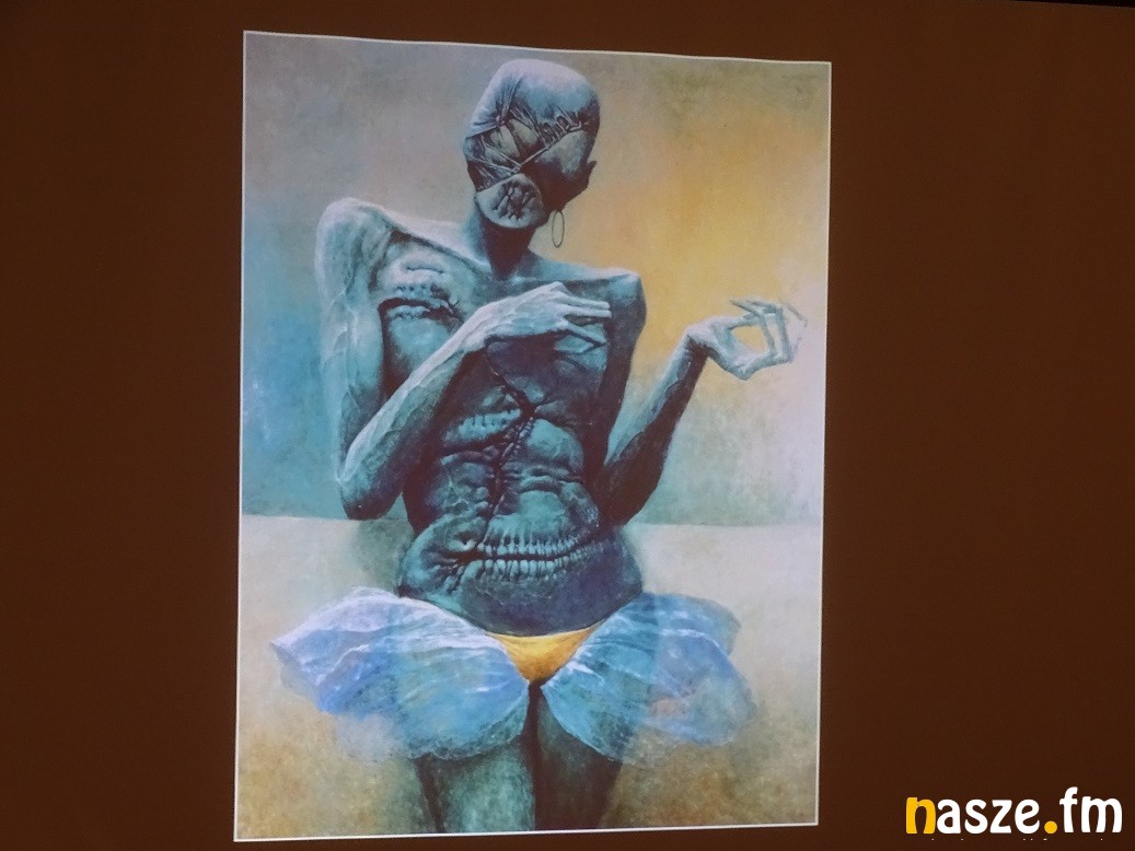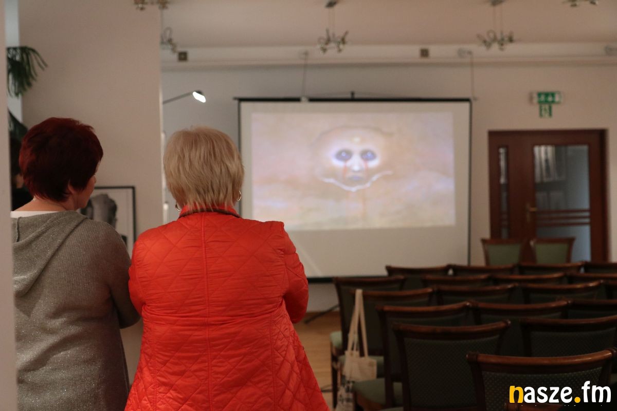 Wstępem do zwiedzania, otwartej w piątek wystawy, był multimedialny pokaz. O życiu i twórczości Zdzisława Beksińskiego wspaniale opowiedziała Ewa Barycka z Fundacji Beksiński. Jej prelekcji towarzyszył pokaz slajdów. Od prac z dzieciństwa, przez fotografię, grafiki, po marzenia i pomysły na wykorzystanie nowoczesnych technologii.
