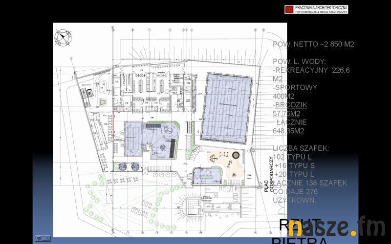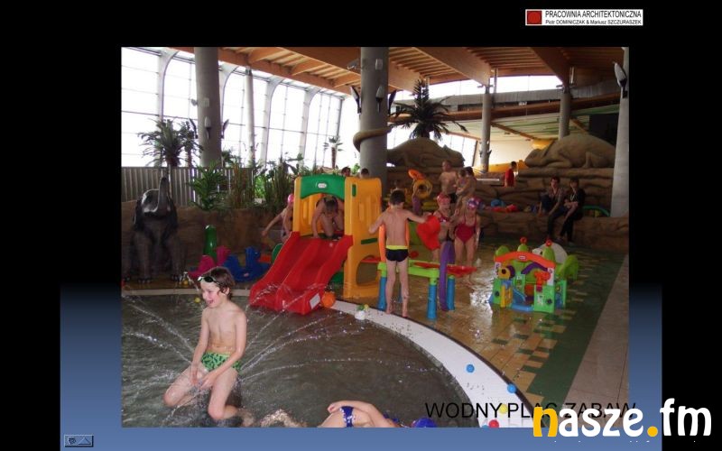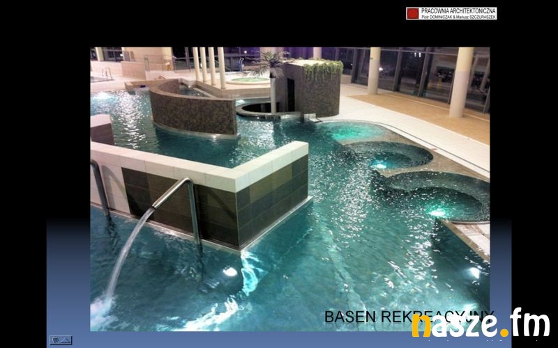 Powierzchnia użytkowa całego obiektu będzie wynosić 2.627 metrów kwadratowych i będzie on budynkiem trzykondygnacyjnym. Znajdą się w nim: basen sportowy o wymiarach 25 x 16 m, basen rekreacyjny o powierzchni 154 metrów kwadratowych z masażami wodnymi, ławeczkami powietrznymi, gejzerem i rwącą rzeką, basen wielofunkcyjny z ruchomym dnem o wymiarach 12 x 6 m, wodny plac zabaw dla dzieci, sauny fińskie (w tym jedna zewnętrzna), łaźnia parowa, biosauna, sauna na podczerwień, baseny schładzające (w tym jeden zewnętrzny). Przy basenach pojawią się przebieralnie z szafkami dla 276 osób oraz widowni na 160 miejsc. W ramach inwestycji powstanie również parking na 175 miejsc dla samochodów osobowych oraz 2 dla autobusów.
