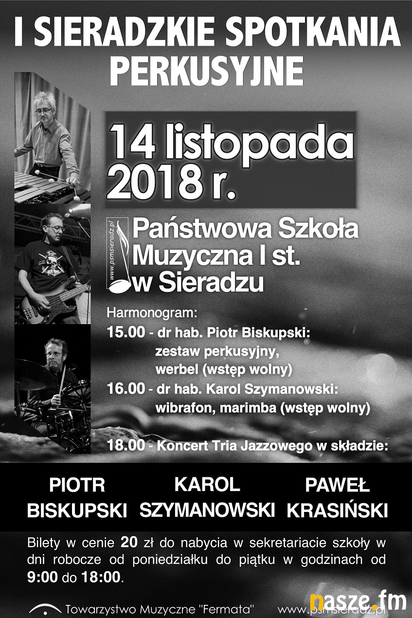 W warsztatach od rana będą mogli wziąć udział uczniowie PSM I st w Sieradzu. Na godz. 15:00 i 16:00 zaplanowano też takie adresowane do wszystkich zainteresowanych grą na perkusji.