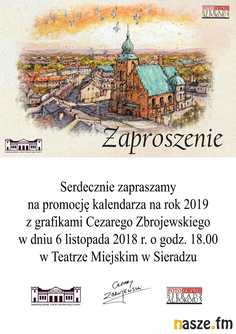 Jutro w Teatrze Miejskim w Sieradzu odbędzie się promocja wyjątkowego kalendarza na 2019 rok. Znajdziecie w nim grafiki, na których widnieją obiekty będące częścią Sieradza. Ich autorem jest malarz Cezary Zbrojewski.