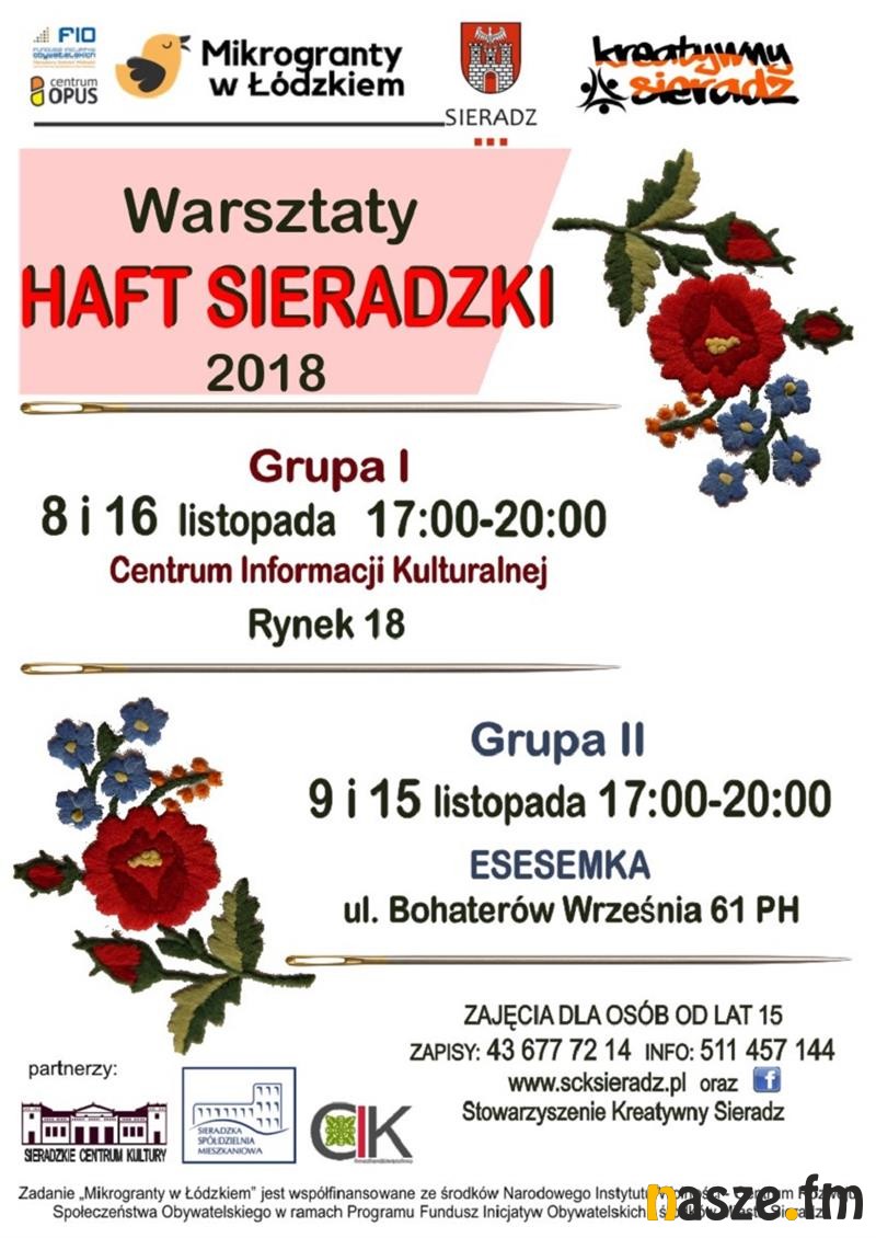 Stowarzyszenie Kreatywny Sieradz zaprasza na Warsztaty Haftu Sieradzkiego organizowane w ramach programu „Mikrogranty w Łódzkiem”. Warsztaty przeznaczone są dla mieszkańców miasta Sieradz, którzy ukończyli minimum 15 lat. Trwają zapisy.