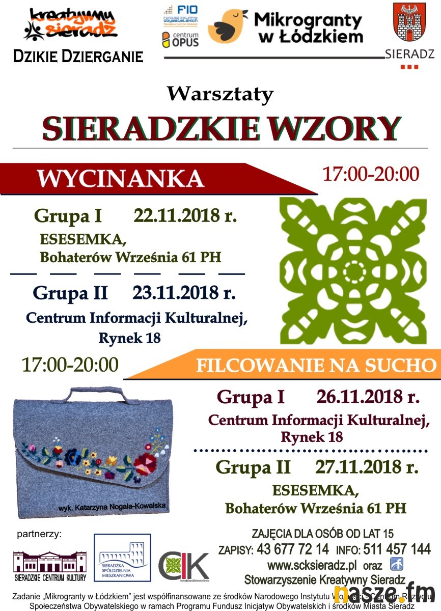 Grupa Dzikie Dzierganie oraz Stowarzyszenie Kreatywny Sieradz zapraszają na warsztaty „Sieradzkie wzory – wycinanka i haft". Warsztaty są zorganizowane w ramach programu „Mikrogranty w Łódzkiem".