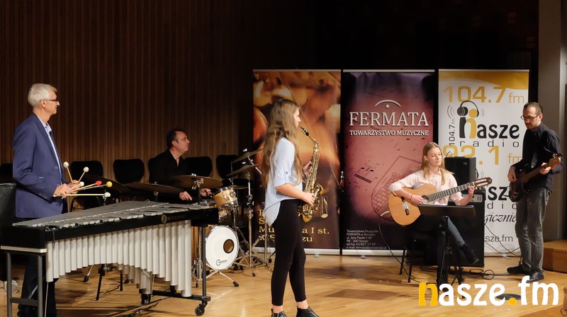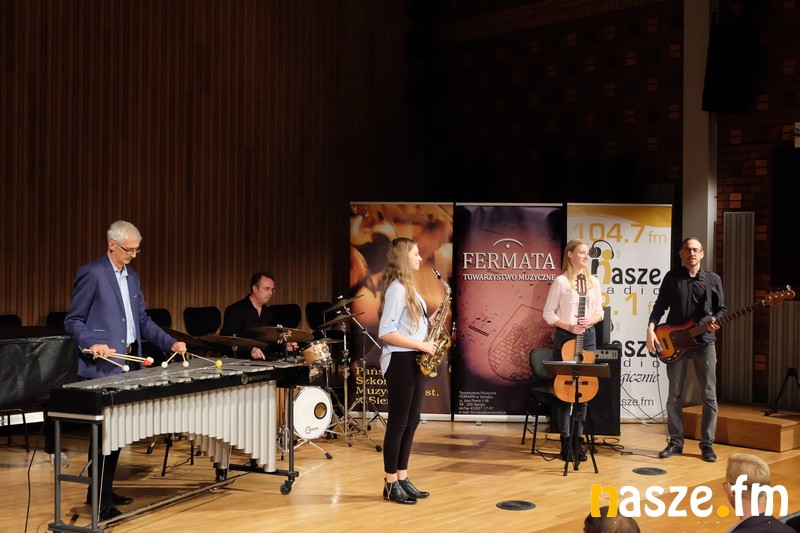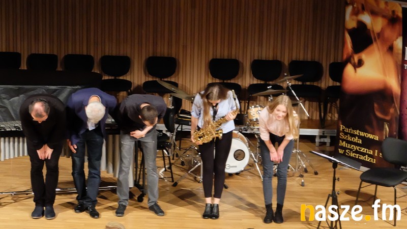- Do dwóch zacnych instrumentalistów dołączył nauczyciel sieradzkiej szkoły, Paweł Krasiński grający tym razem na gitarze basowej. Koncert złożony ze standardów jazzowych został ciepło przyjęty przez sieradzkich melomanów. Obfitował również w niespodzianki - pierwsza miała miejsce się na początku koncertu. Na scenie pojawiła się gitarzystka Magdalena Kowalczyk wraz z Pawłem Krasińskim grającym na perkusji przedstawili utwór z nowego, wspólnego projektu, który być może już niedługo zostanie zaprezentowany w całości. Zakończenie koncertu również nie było typowe. Do grona muzyków dołączyły uczennice: saksofonu - Weronika Galowicz i gitary - Karolina Bakowicz. W wykonaniu tego zespołu zabrzmiały utwory "Czarny Orfeusz" oraz "Cameleon" - relacjonuje Sławomir Ceiślak, wicedyrektor szkoły.